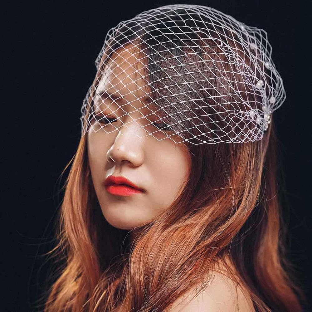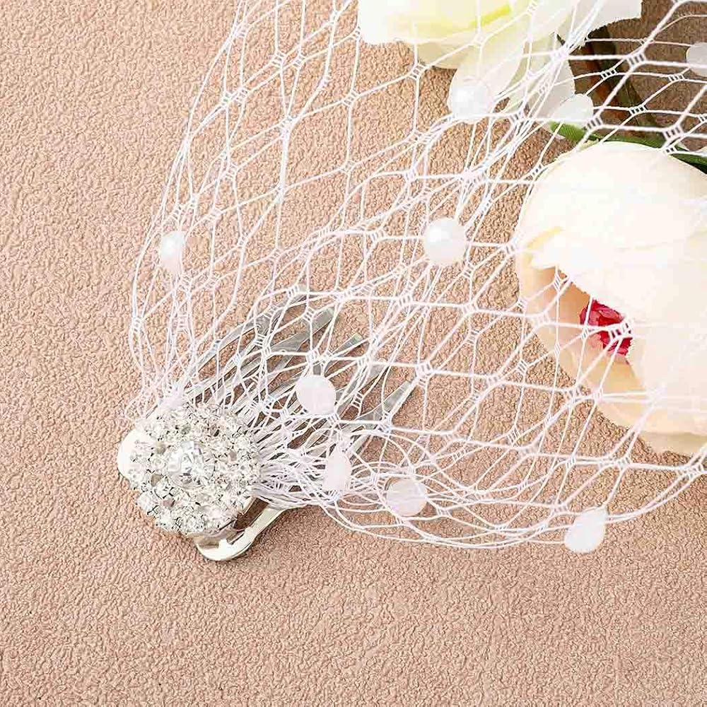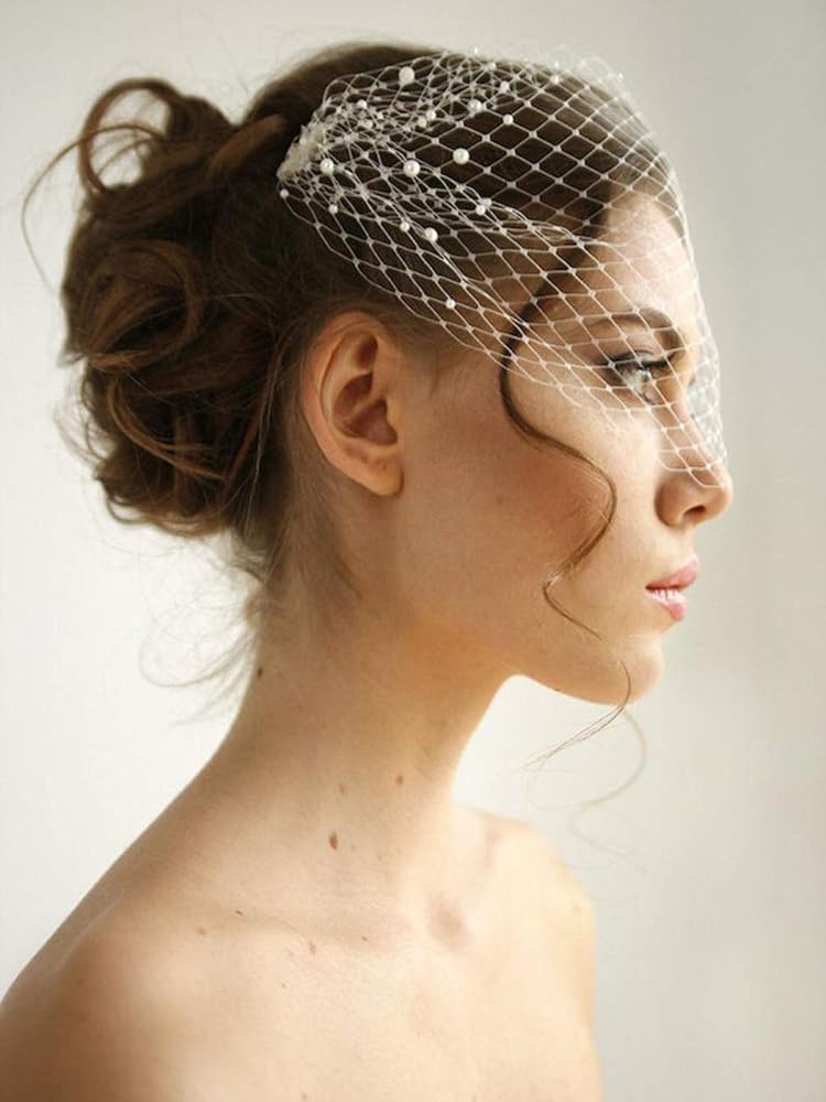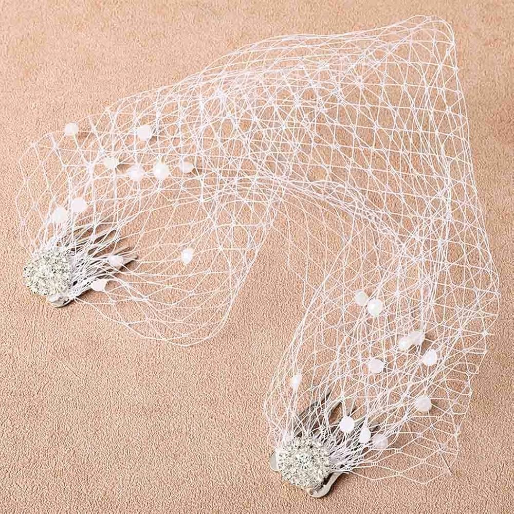 وشاح قفص الطيور للعروس مزين باللؤلؤ ومشط شعر كريستال.