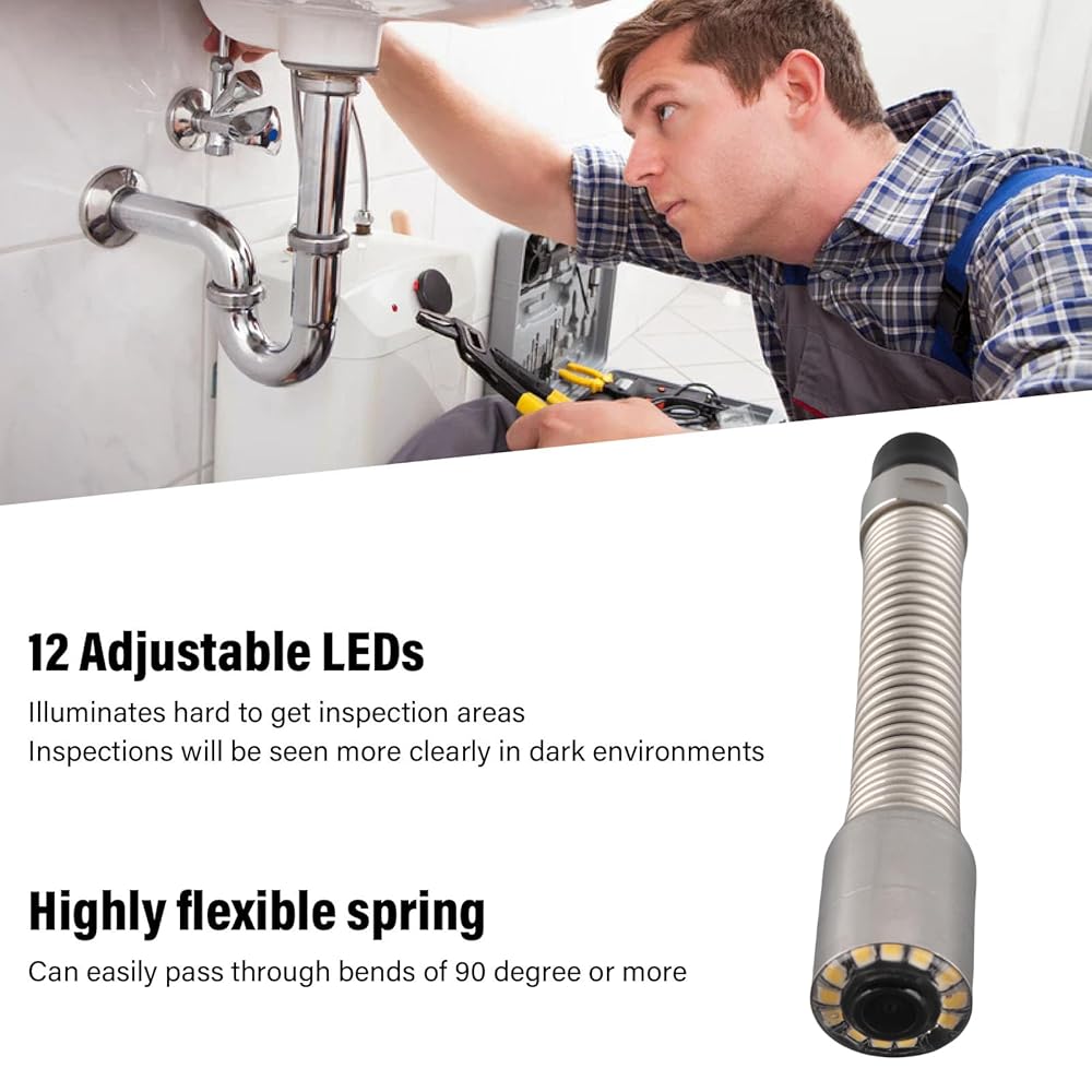 [Bright Adjustable Led Lights] Equipped with 12 high brightness white leds this pipe drain endoscope camera accessory illuminates even the darkest inspection areas. the adjustable light ensures optimal visibility for detailed inspections in any environment.