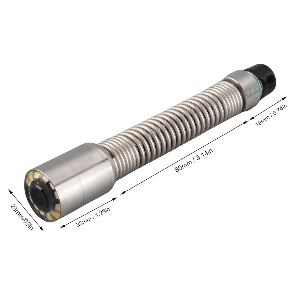 [Flexible 90 Degree Bend Capability] The highly flexible spring design of this borescope inspection camera head allows it to easily navigate bends of 90 degrees or more. this flexibility ensures comprehensive inspection coverage in complex pipe systems.