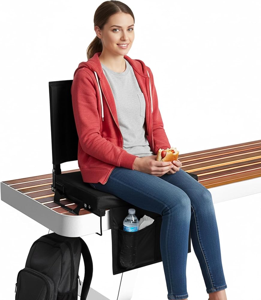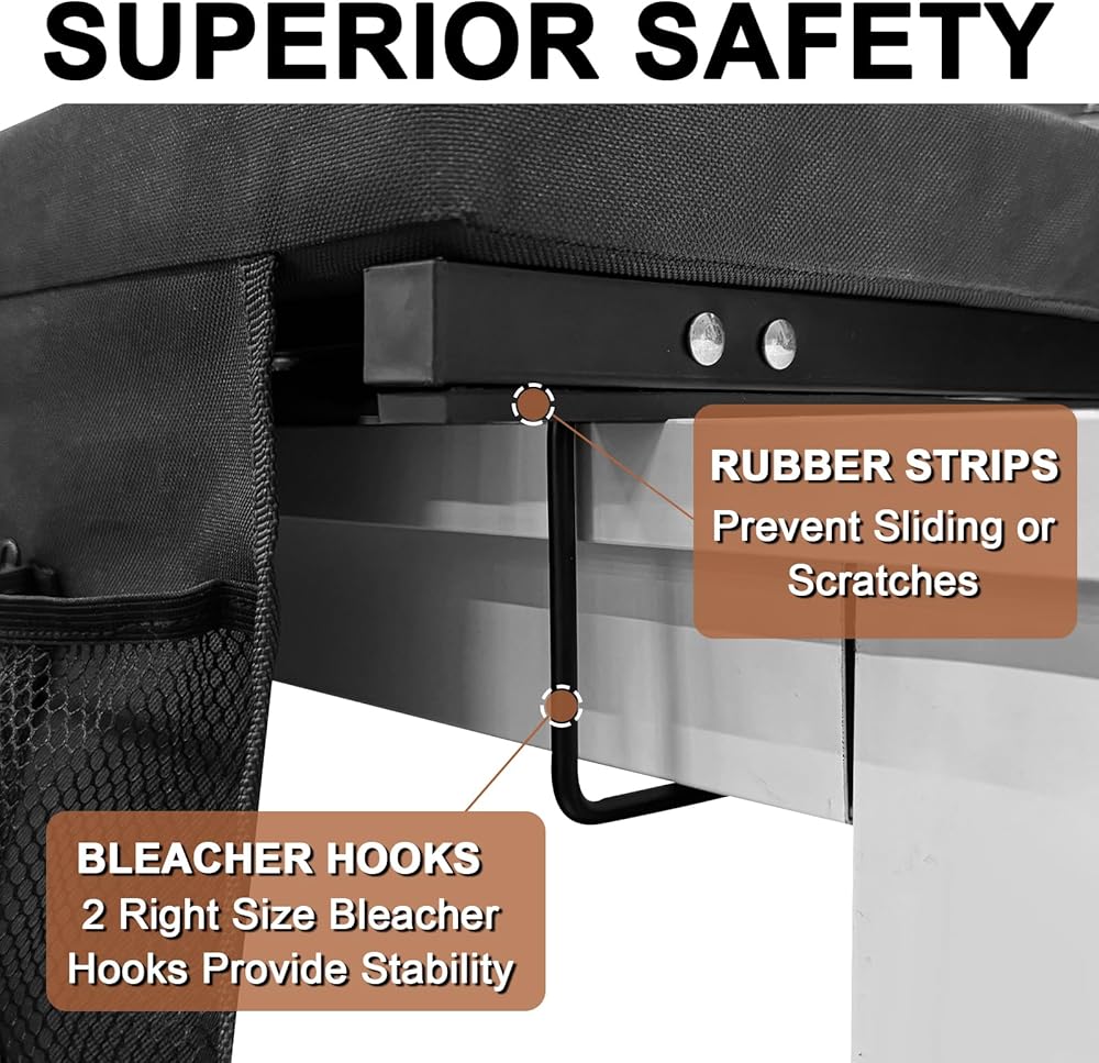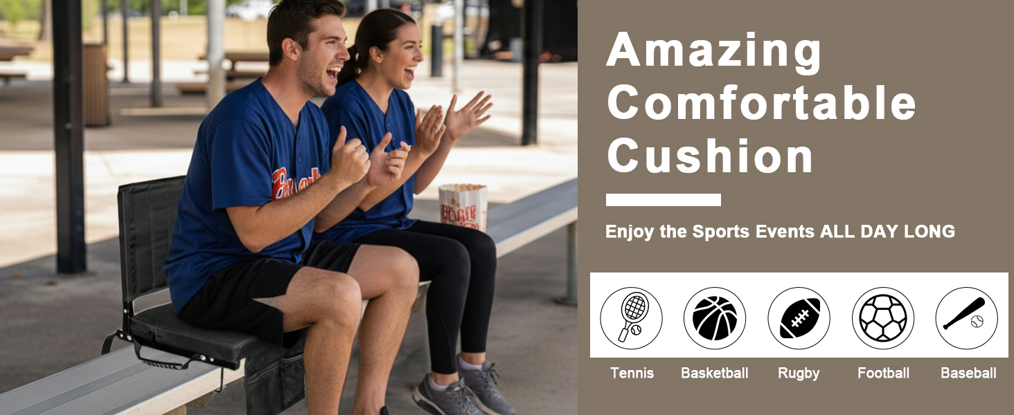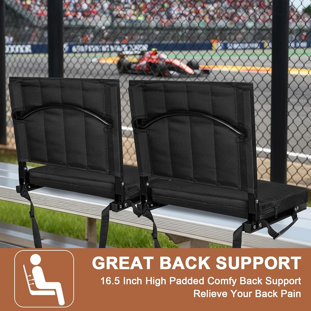 راحة فخمة وسميكة: تمتع براحة فائقة مع مقعد الاستاد الخاص بنا، والذي يتميز بوسادة مليئة بإسفنجة عالية المرونة بسمك 2 بوصة. مقترنًا بمسند ظهر مريح ومبطن بسخاء مقاس 12.5 بوصة، ويوفر نعومة تشبه السحابة وراحة كاملة وداعمة، مما يحول المبيضات الصلبة بشكل فعال إلى عرش شخصي مبطن.