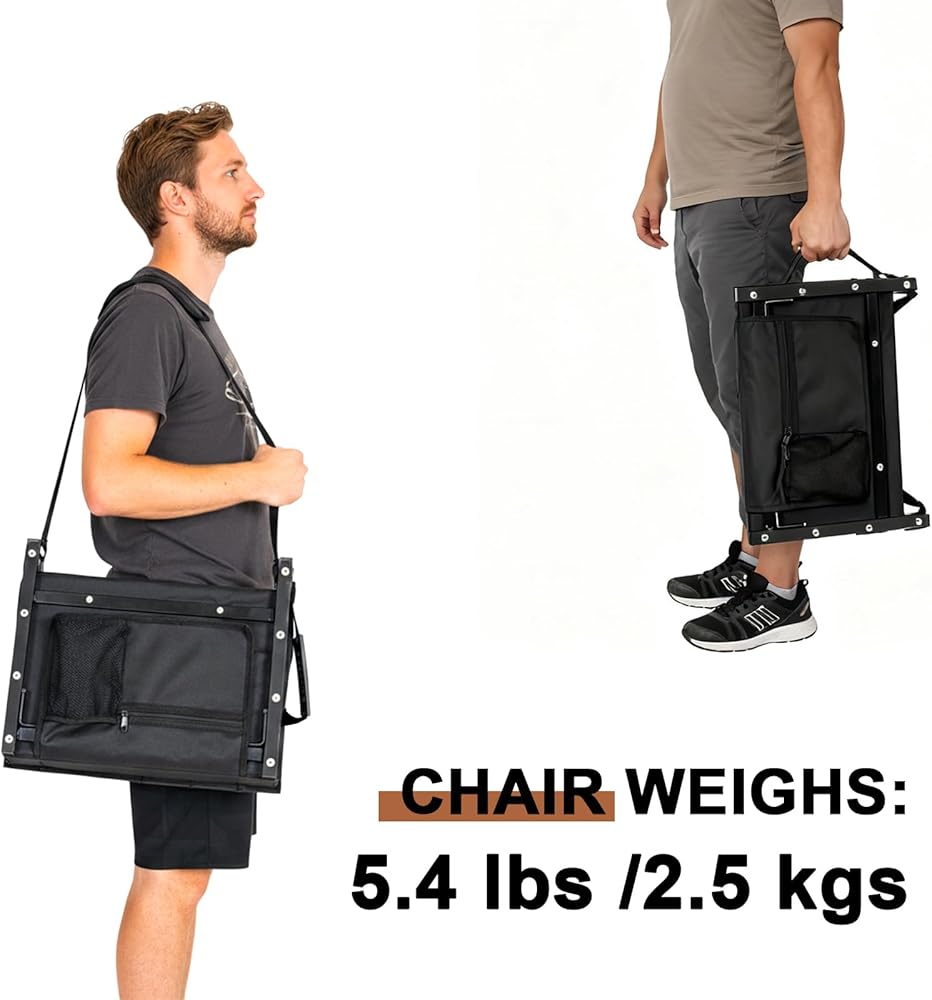 خفيف الوزن ومعبأ بالراحة يزن هذا المقعد 6.2 رطل فقط، ويجمع بين البناء القوي وسهولة الحمل. يمكن حملها باليد بشكل مريح أو حملها على الكتف باستخدام حزام الكتف المبطن القابل للتعديل، والذي يمكن تخصيصه حسب الطول المفضل لديك. يتم تثبيت أحزمة التثبيت ذات الخطاف والحلقة المصممة بذكاء بشكل أنيق أسفل المقعد عند عدم الاستخدام، مما يبقيها آمنة وبعيدًا عن الطريق.
