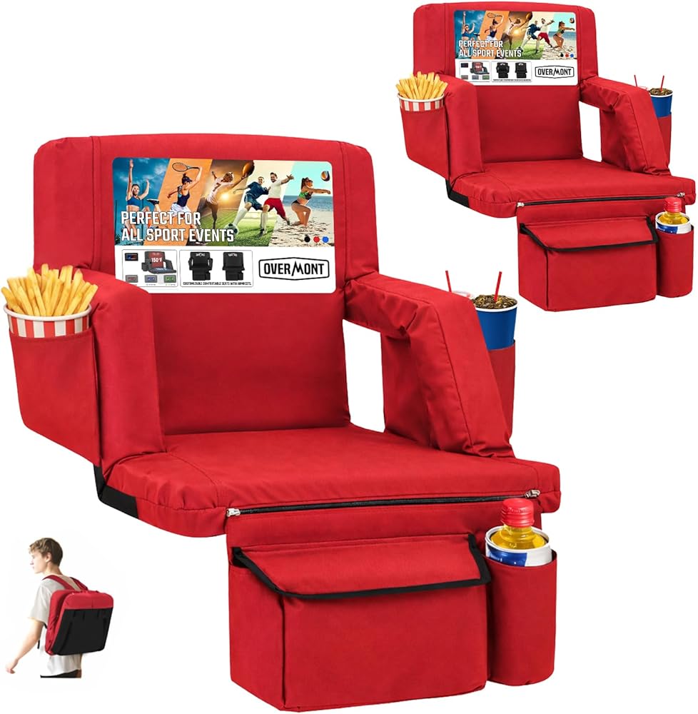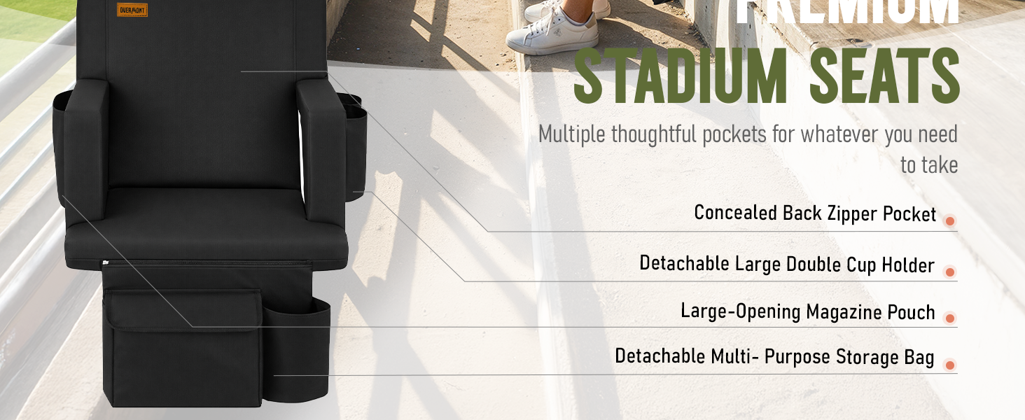 [إطار فولاذي قوي مع دعم موثوق] تم تصميم مقعد الاستاد المحمول القابل للطي هذا بإطار فولاذي عالي التحمل وبطانة سميكة، ويوفر دعمًا ثابتًا من البداية إلى النهاية. يوفر مسند الظهر المبطن بارتفاع 18 بوصة راحة دائمة وتبطينًا فائقًا، مما يحافظ على راحة ظهرك - حتى أثناء العمل الإضافي.
