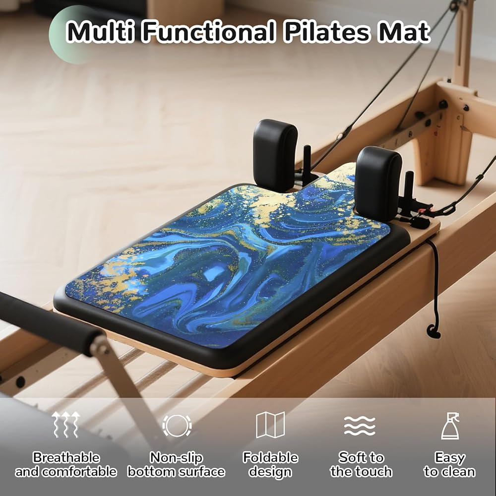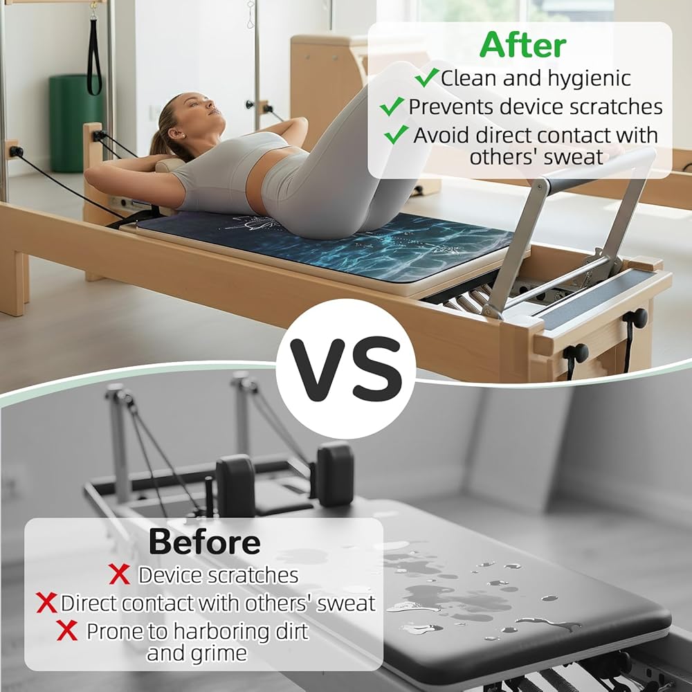 Hygienic Protection: Mat pilates placed on public pilates reformers, effectively preventing direct contact with others' perspiration. It safeguards equipment against scratches and wear, maintaining its pristine condition. At home pilates is machine washable for effortless cleaning and maintenance