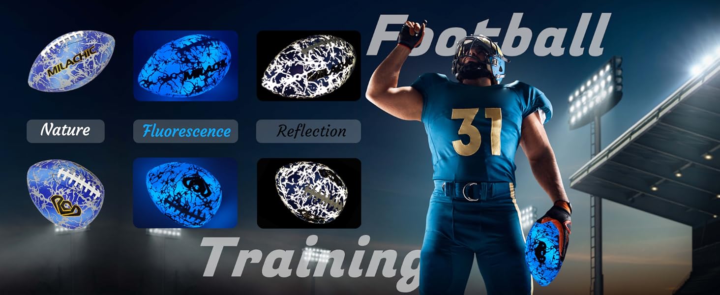 • 『كرة القدم المتوهجة في الظلام والمجسمة』- جيل جديد من جلد البولي يوريثان المضيء الفاخر مع تأثير ثلاثي الأبعاد على السطح، يجعل كرة القدم تتوهج أكثر إشراقًا في الظلام بعد امتصاص الطاقة من أشعة الشمس أو مصادر الضوء القوية الأخرى، ولها أيضًا تأثير ثلاثي الأبعاد مذهل عندما يسلط الضوء على الكرة.