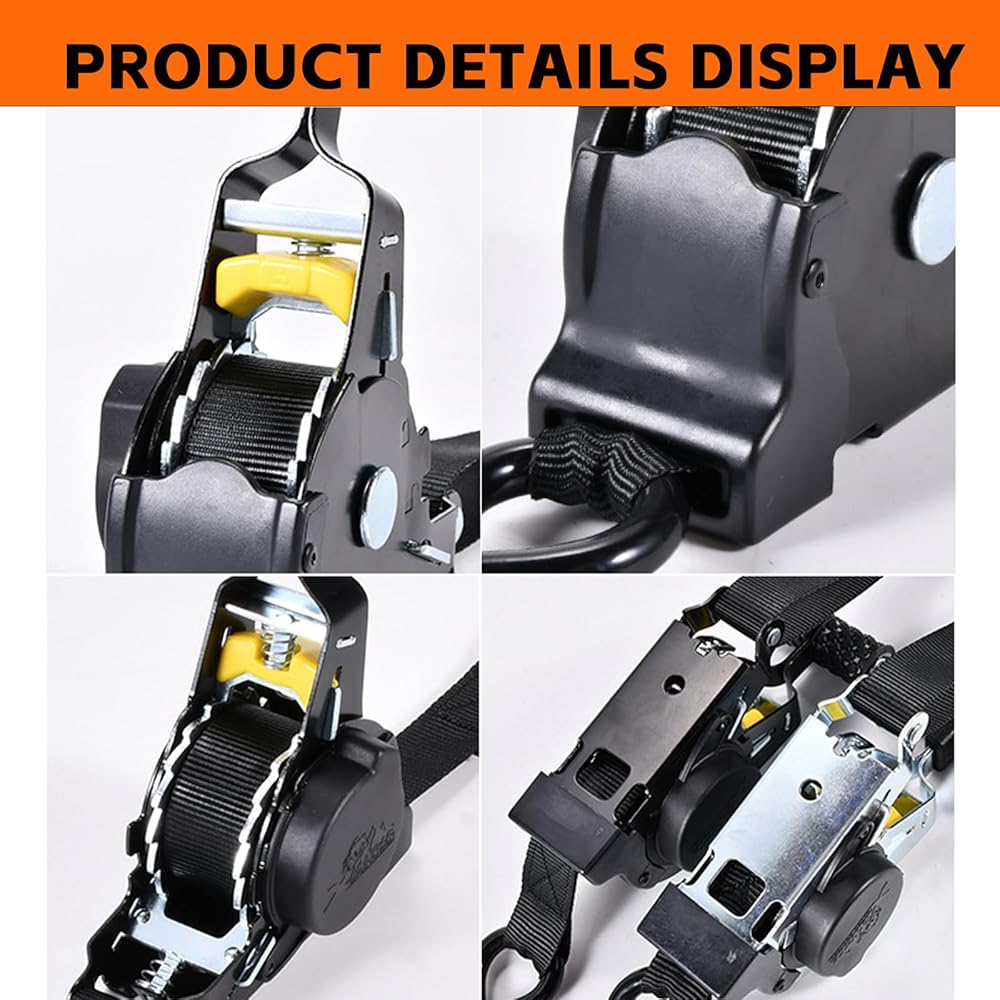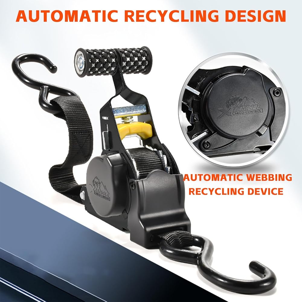 ✅ Self-Retracting & Tangle-Free Say goodbye to wrestling with messy straps. The built-in reel automatically retracts and neatly stores the strap after every use. A simple pull secures your load, and a smooth release lets it zip back—no more manual coiling or messy storage.