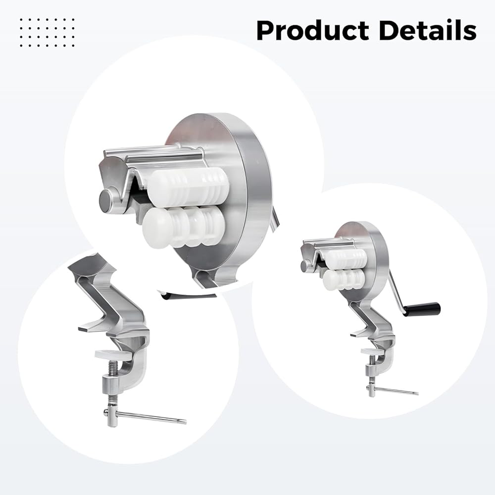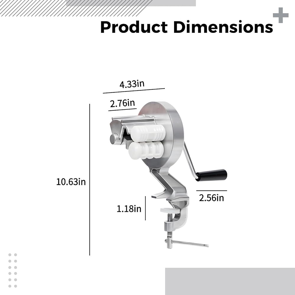 Color: Silver Material: Aluminum alloy Size: Pasta Machine: Total Height 10.6 in / 27 cm,Handle: 2.6 in / 6.5 cm,Width: 4.3 in / 11 cm,Roller Width: 2.8 in / 7 cm,Clamp Opening: 1.2 in / 3 cm Package Includes: 1 x Pasta Machine Note: - Please refer to the measurement. Tiny measuring error is allowable in normal range. - There might be a little color difference due to the monitor, camera or other factors, please refer to the physical item.