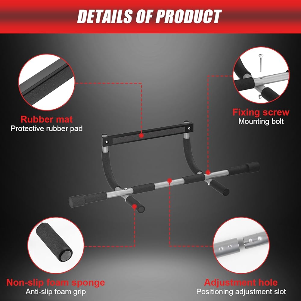 مادة ممتازة وتقليل الضوضاء: تم تصنيع شريط السحب الداخلي هذا من الفولاذ عالي القوة، مما يضمن ثباتًا قويًا أثناء الاستخدام. تم تجهيز الإطار الفولاذي المربع في الأعلى برغوة مبطنة سميكة، والتي تحمي أسطح الجدران بشكل فعال من أضرار الضغط. لا يوجد ضجيج متناثر من الأجزاء المعدنية أثناء التدريب؛ المقابض الإسفنجية مصنوعة من مادة تقلل الضوضاء مما يقلل من أصوات الاحتكاك عندما تمسك بيديك بإحكام. حتى إذا كنت تستخدمه في وقت متأخر من الليل أو في شقة مشتركة، فلن يزعج راحة الآخرين