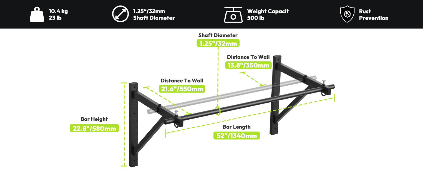 ☀️Indoor & Outdoor Use: The pull up bar wall mounted features a powder-coated surface finish with exceptional rust resistance and long-lasting durability, ensuring it can withstand heavy-duty use in both indoor and outdoor environments.