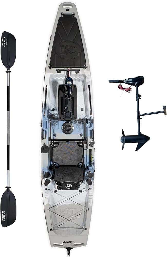 Brooklyn 12.5 Pro Pedal Propeller Drive Fishing Kayak من BKC، قارب كاياك فردي للجلوس على القمة مع نظام الدفة، تخزين جاف، حاملات قضبان وسعة 550 رطل in Kuwait