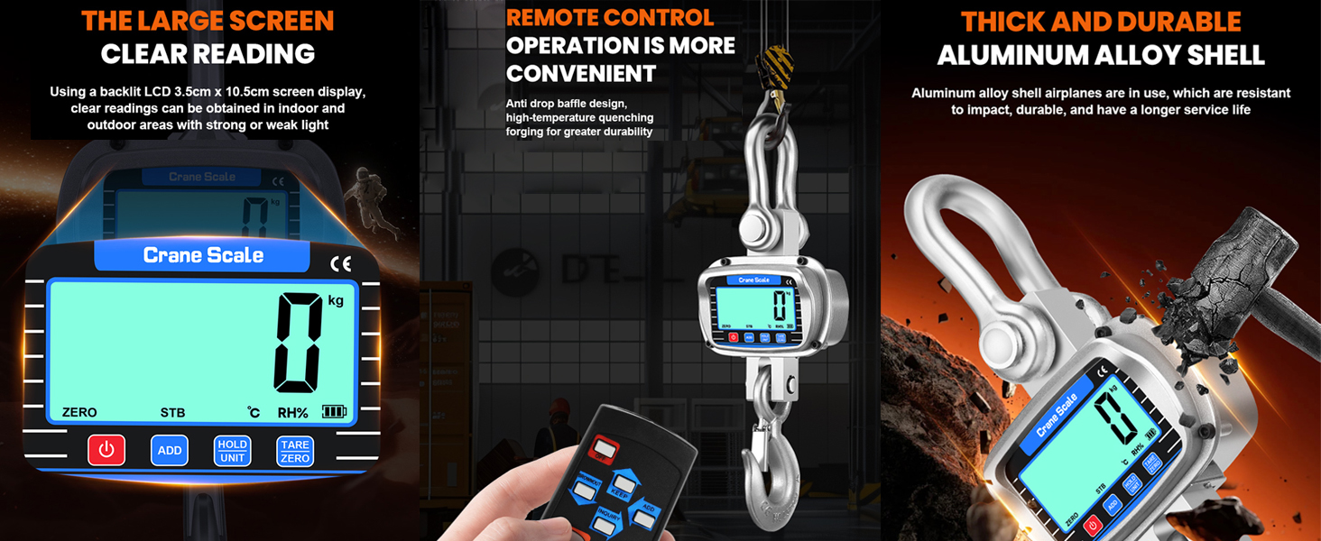 مادة متينة: انسَ تلك المقاييس البلاستيكية الهشة! يتميز ميزان التعليق الخاص بنا بجسم من الألومنيوم المصبوب، وحلقات من الفولاذ المقاوم للصدأ 304، وخطافات من سبائك الفولاذ، وجميعها معالجة لمقاومة التآكل والصدأ. يعمل بشكل موثوق في الظروف القاسية، من -50 درجة فهرنهايت إلى 104 درجة فهرنهايت، مع الحفاظ على دقة عالية بغض النظر عن درجة الحرارة.