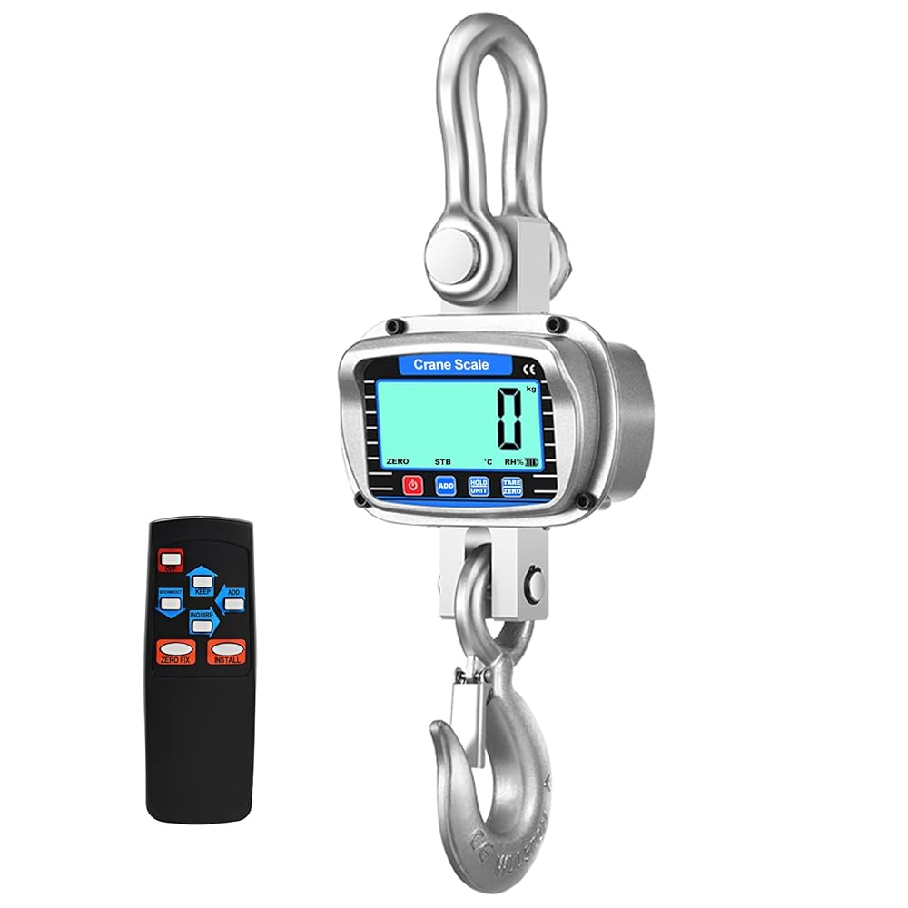 مقياس الرافعة الرقمي 6600 رطل/3000 كجم/3T قابل للقياس درجة الحرارة والرطوبة مقياس معلق صناعي ثقيل مع شاشة LCD للتحكم عن بعد للبناء والمصنع والمزرعة (فضي)