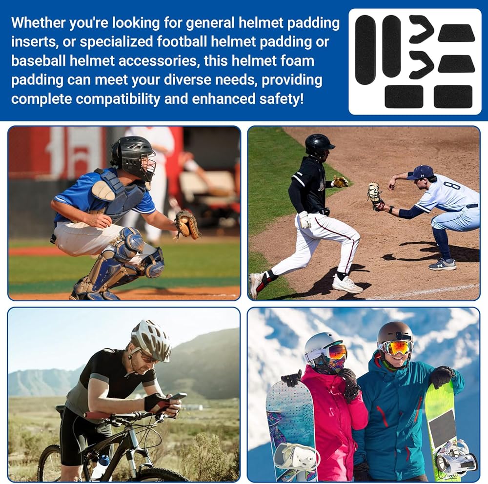 • 【Versatile Use】This multifunctional helmet padding kit fits baseball/softball batting helmets, football protective helmets, and other sports gear universal compatibility for youth to adult sizes. Ideal as helmet padding replacement parts, it replaces worn/aging foam padding, instantly custom-fitting old helmets. Also serves as a practical baseball helmet padding & universal helmet liner kit.