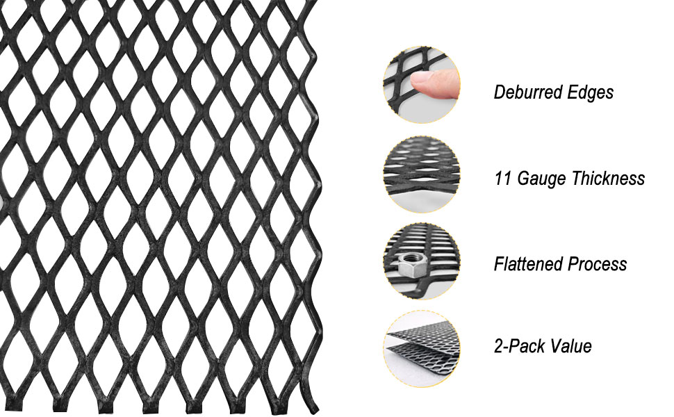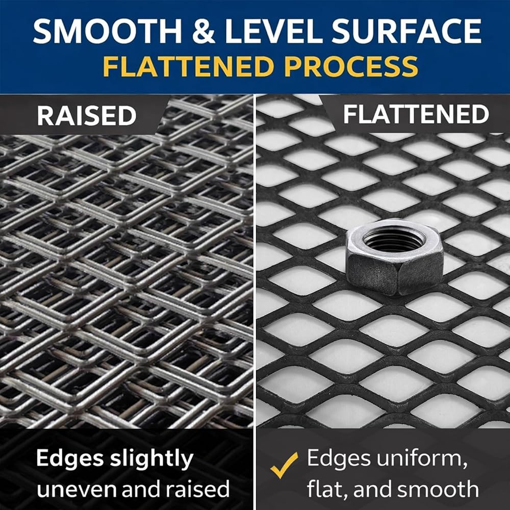 【لا مزيد من القطع الحادة】 على عكس المعدن الموسع القياسي الذي يصل مع مخارز حادة، تتميز صفائحنا الفولاذية بحواف محفورة بدقة. يمكنك التعامل معها ولحامها وتثبيتها بثقة وراحة بال - لا مزيد من الخدوش أو القطع العرضية أثناء مشاريع الأعمال اليدوية الخاصة بك.