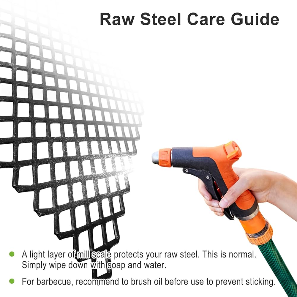 【جاهز لدرجة الحرارة العالية】 شبكتنا مصنوعة من الفولاذ الخام بنسبة 100% بدون طلاء. إنها مناسبة تمامًا للبيئات عالية الحرارة مثل شبكات مدخن الشواء المخصصة وأغطية حفرة النار وبدائل الشواية. بمجرد أن تتبل، فإنها توفر سطحًا آمنًا صالحًا للطعام لجميع احتياجات الطبخ في الهواء الطلق.