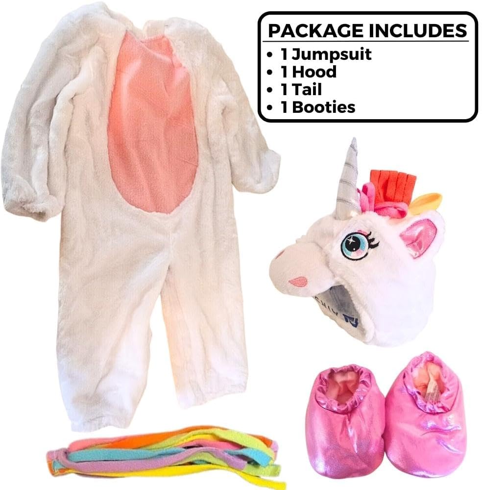 مجموعة شاملة كليًا: تتضمن بذلة ناعمة ومريحة، وغطاء رأس أحادي القرن، وذيل قوس قزح، وأحذية وردية لطيفة، مما يوفر مظهرًا كاملاً وساحرًا لطفلك.