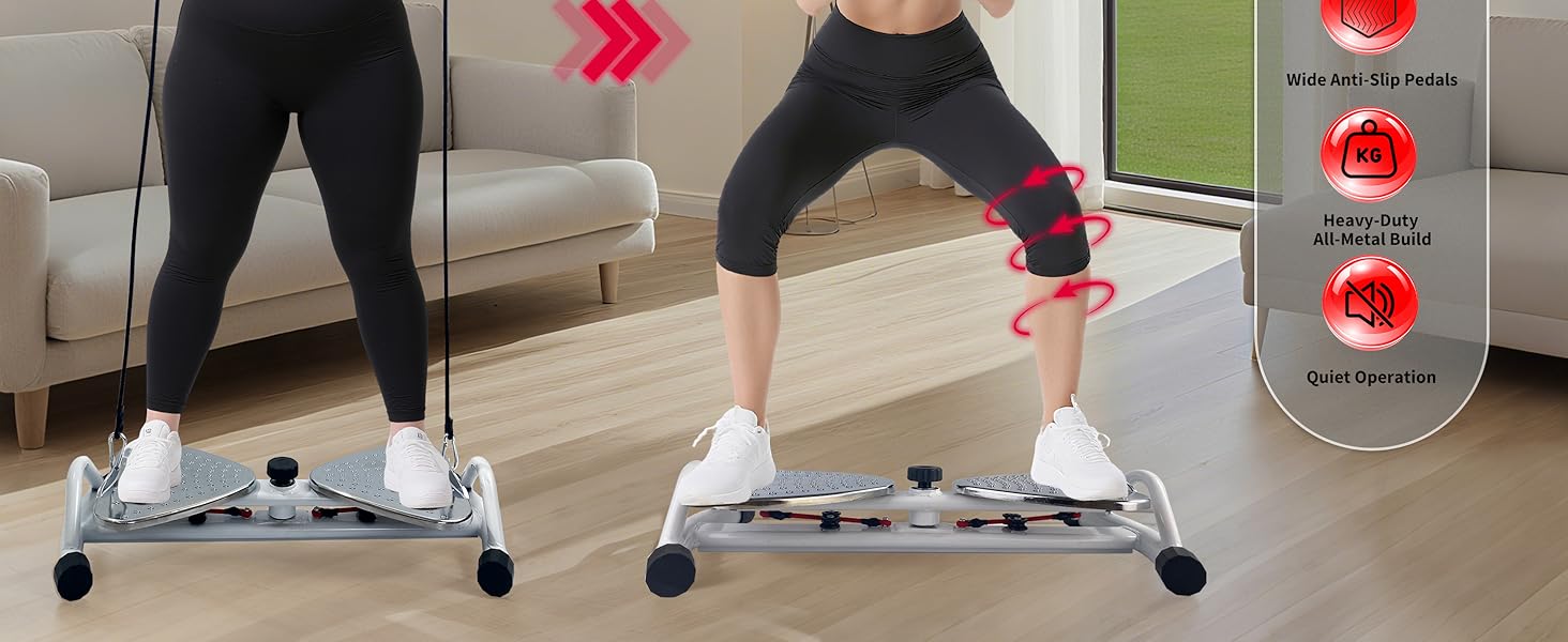 【تحويل أساسي كامل - تقوية ونحت وتنحيف】أعد تعريف روتين اللياقة البدنية الخاص بك مع تويستر الخصر، وهو لوح تويستر ثنائي الدواسة مصمم لتوحيد وشد وتقوية الجزء الأساسي بالكامل. من خلال الحركة الدورانية السلسة، تعمل آلة التمرين الملتوية هذه على تحسين تشكيل الخصر وتحسين وضعية الجسم وبناء قوة البطن - كل ذلك وأنت مرتاح في منزلك.
