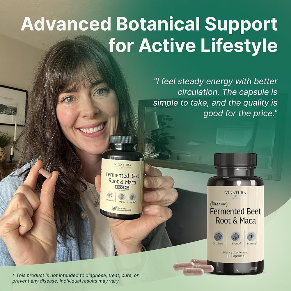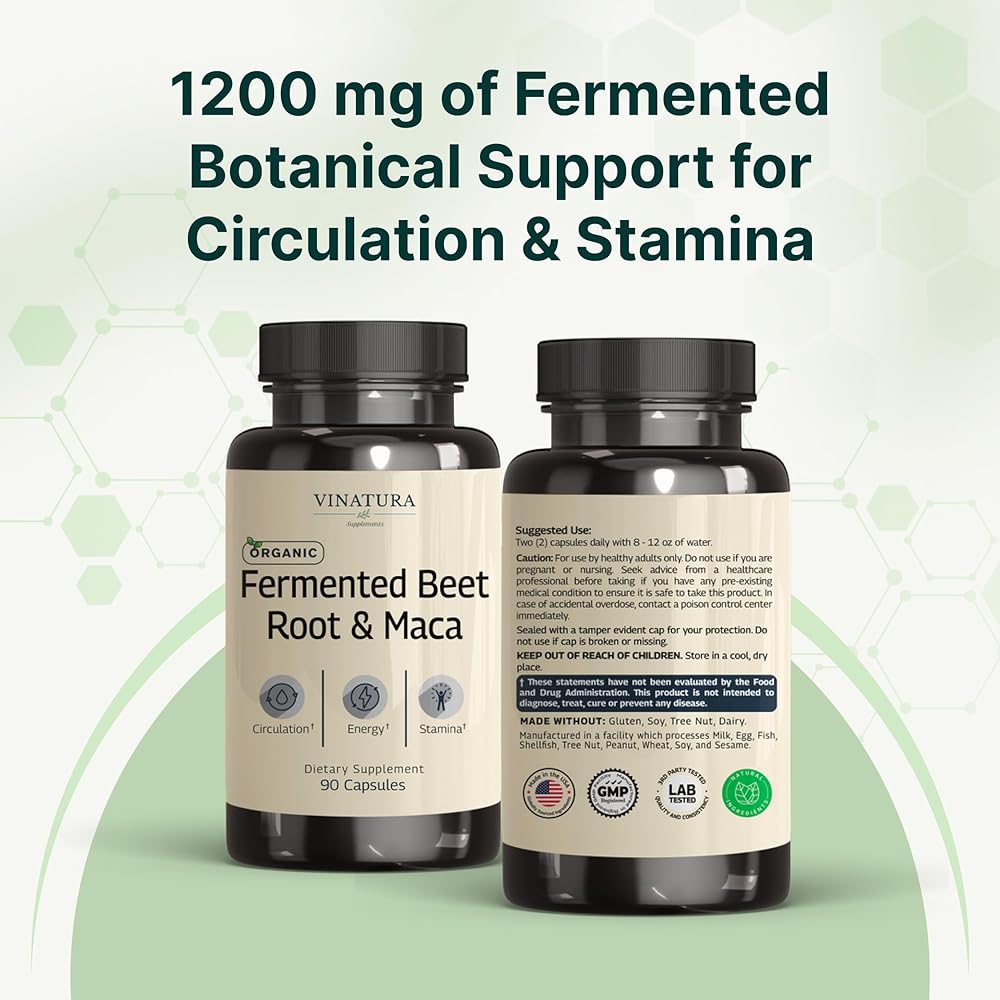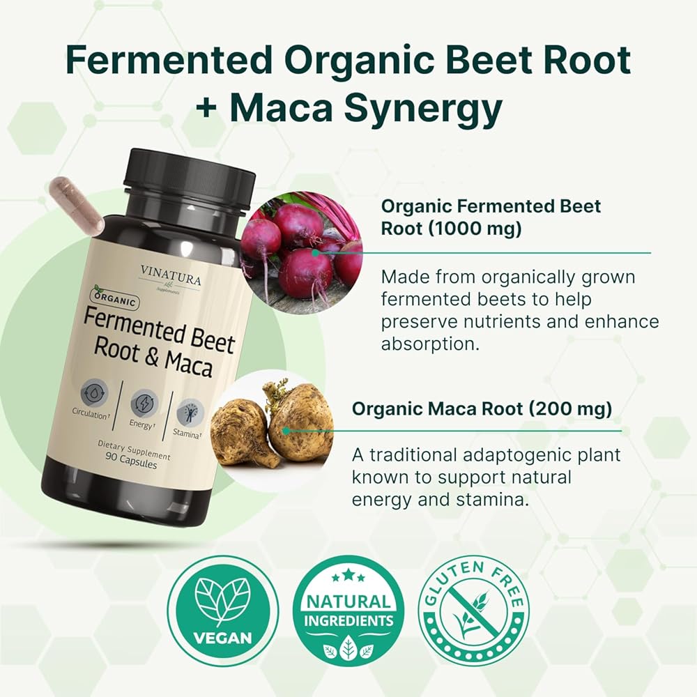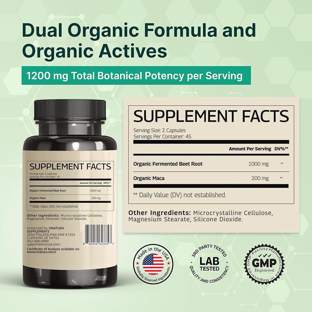 VINATURA جذر البنجر المخمر العضوي مع الماكا، 1200 مجم - صنع واختبار في الولايات المتحدة الأمريكية، 90 كبسولة