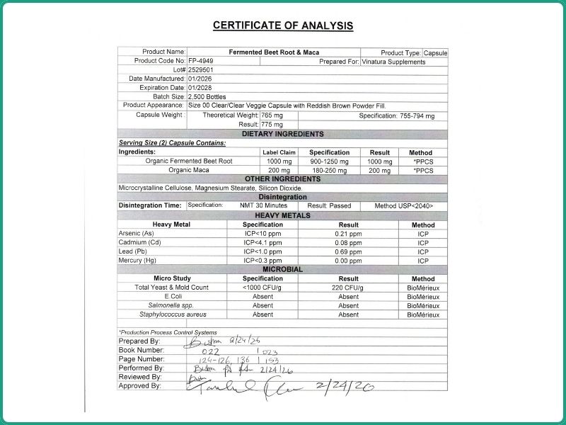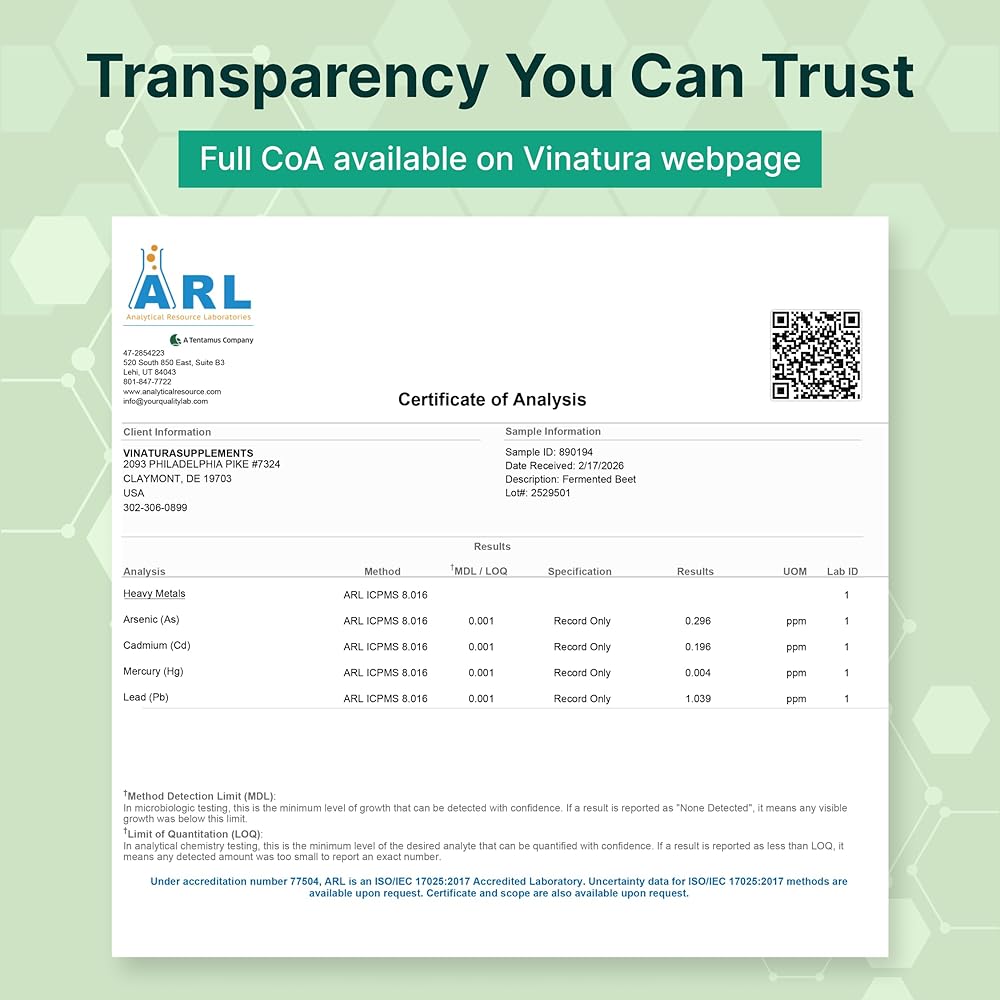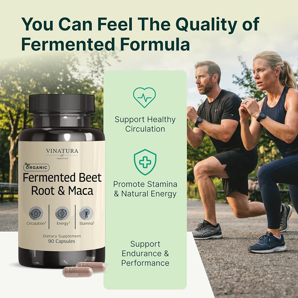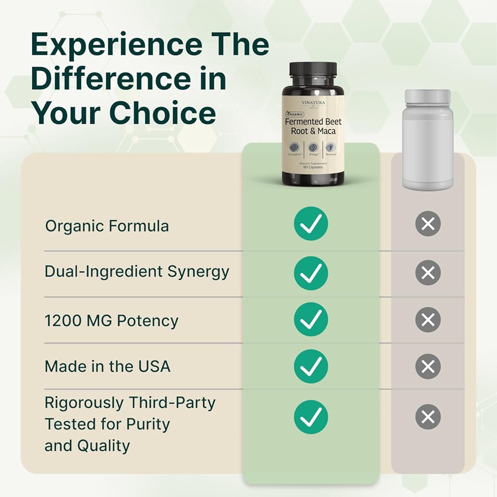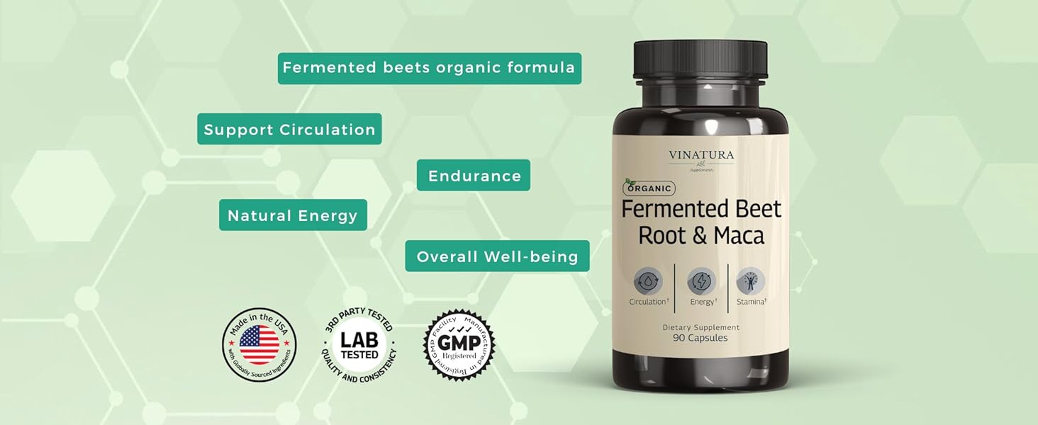 VINATURA جذر البنجر المخمر العضوي مع الماكا، 1200 مجم - صنع واختبار في الولايات المتحدة الأمريكية، 90 كبسولة