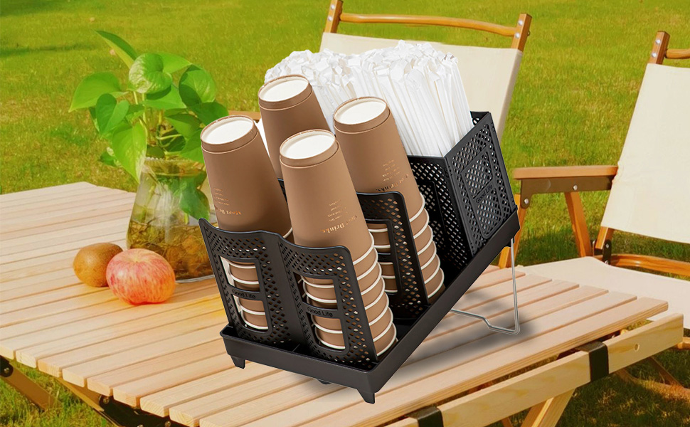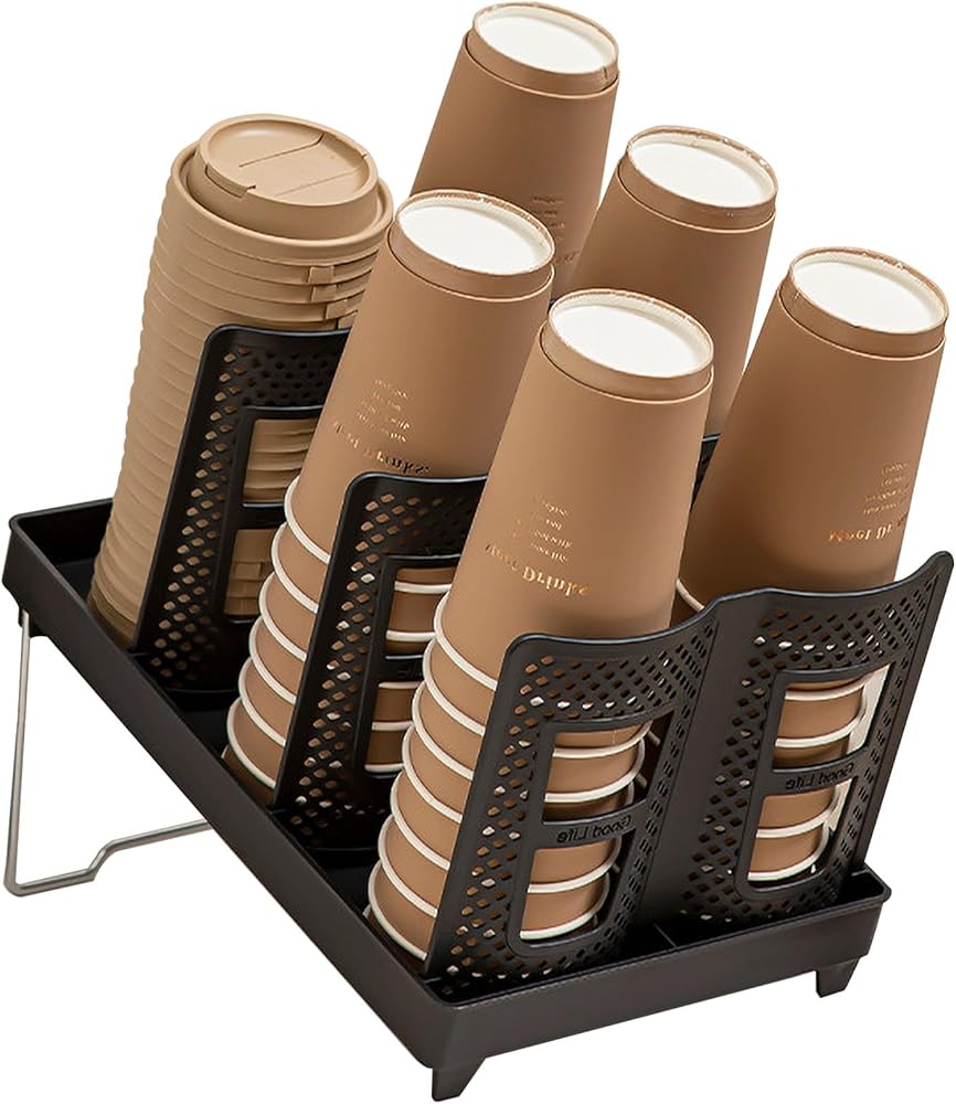 سعة كبيرة توفر المساحة: يحتوي حامل الأكواب الورقية القابل للتصرف هذا على 6 مساحات تخزين، ويحمل ما يصل إلى 80 كوبًا و120 شفاطة في وقت واحد لأكواب القهوة والأغطية التي تُستعمل لمرة واحدة، ويبقيها أنيقة ومرتبة في منطقة المطبخ المزدحمة أو محطة القهوة.