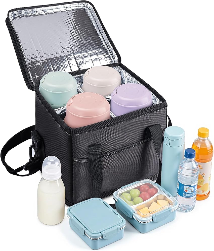 حامل مشروبات معزول بـ 4 أكواب من إنفانزيا مع مقبض - فواصل قابلة للإزالة، حامل أكواب محمول قابل للطي مع حزام كتف، حقيبة حمل مضادة للتسرب قابلة لإعادة الاستخدام لسائقي التوصيل، السيارة، السفر، النزهة