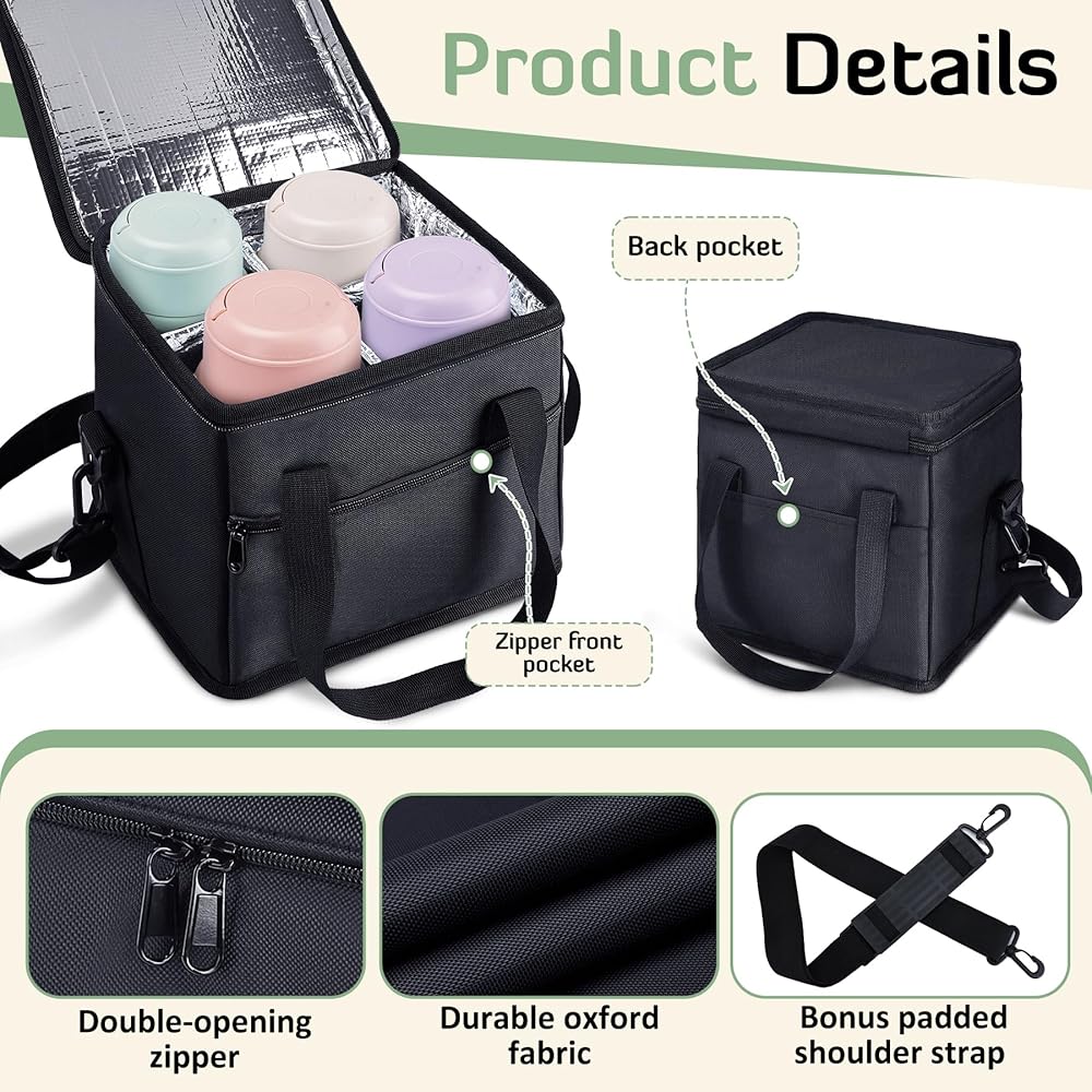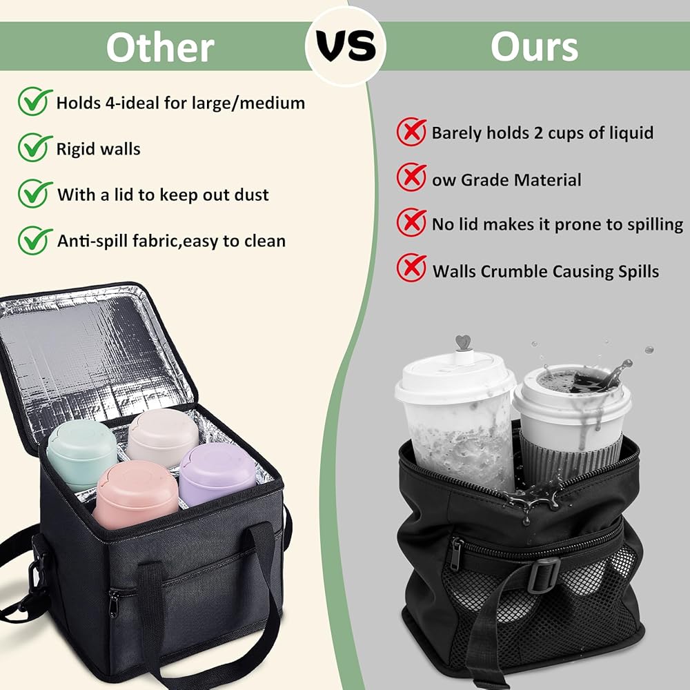 Versatile Adjustable Fit: Designed to securely transport up to four large cups, including 32oz tumblers. Cup holder bag included adjustable, removable dividers allow you to customize the interior space to fit various cup sizes perfectly, preventing tipping and shifting during transit. Whether you're carrying Stanley tumblers, coffee cups and food containers, or just drinks with snacks, this collapsible drink carrier adapts to your needs