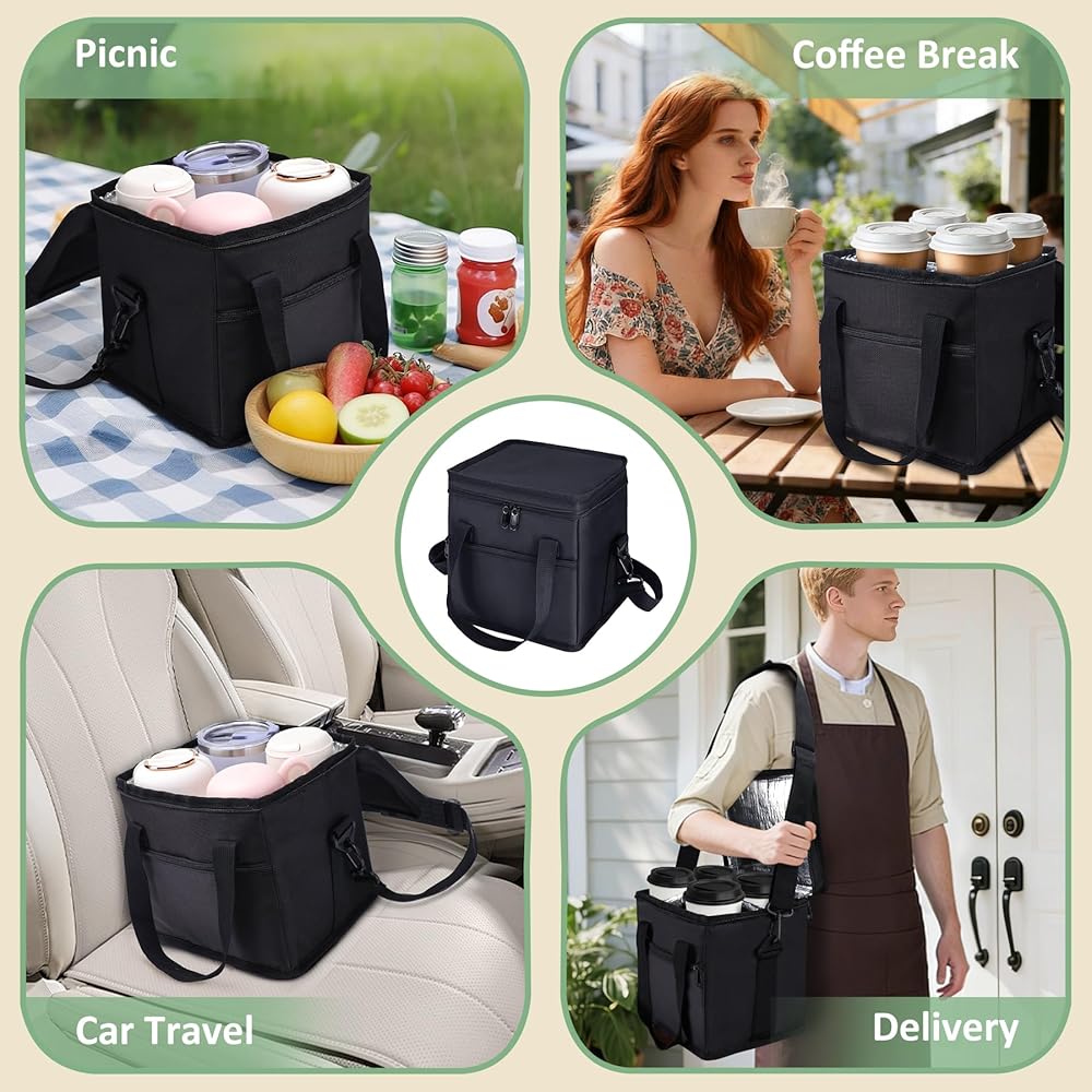 Superior Insulation & Leakproof Construction: Crafted from easy-clean inner foil lining, this insulated drink carrier is built to keep your drinks at the ideal temperature—hot or cold—for longer. The reinforced, sealed base provides an extra layer of leakproof protection, effectively blocking condensation and accidental spills to keep your car seats, delivery bags, or office desks clean and dry