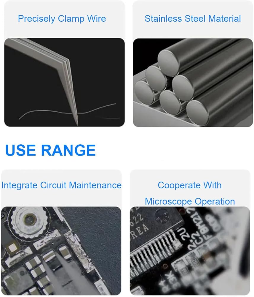 Excellent tension & Control: Stainless steel tweezers feature easy to grip and perfect tension for optimal comfort and control, so you can easily and comfortably clamp anything with soldering tweezers.