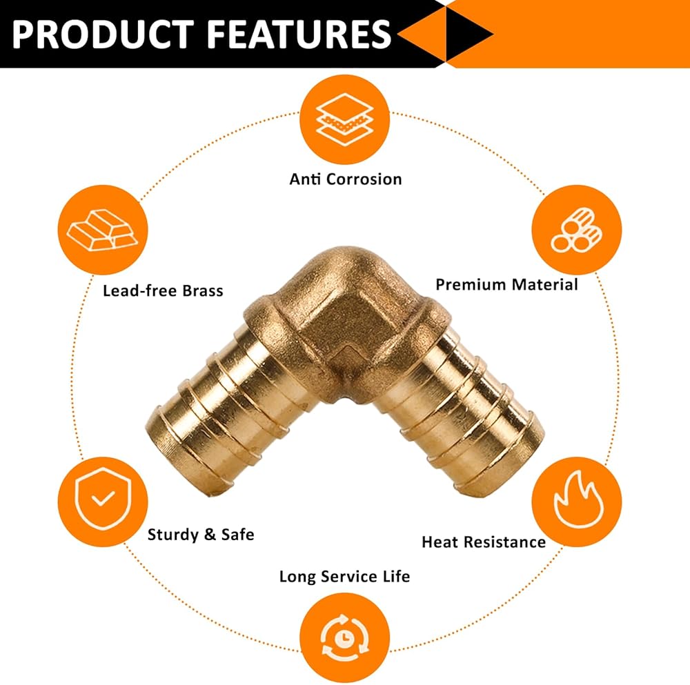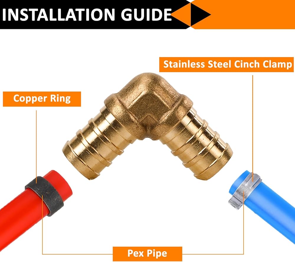 توافق المنتج: يمكن استخدام تركيبات الكوع مع حلقات المفاجئة المصنوعة من الفولاذ المقاوم للصدأ أو أدوات تجعيد PEX والحلقات النحاسية.