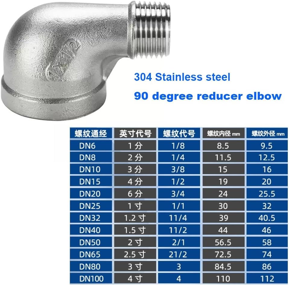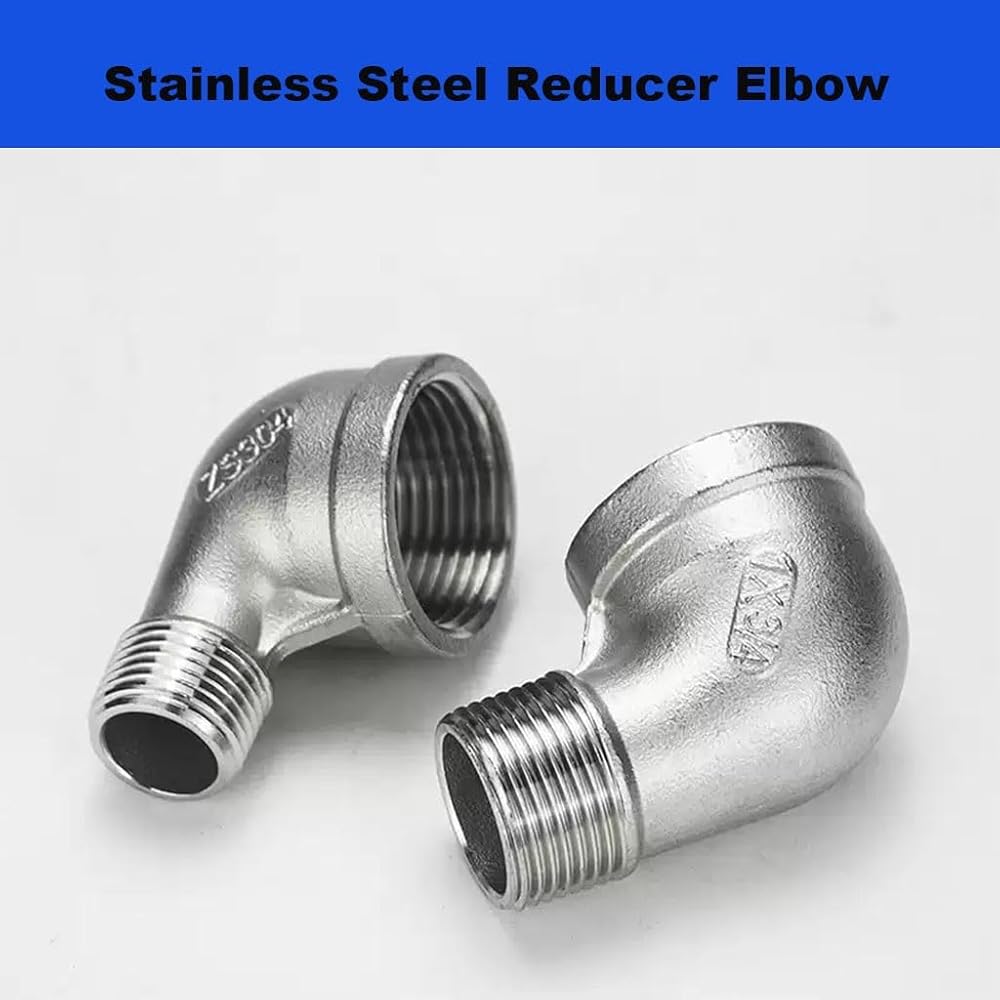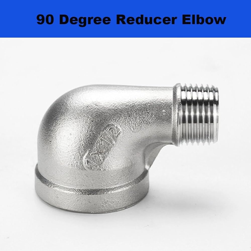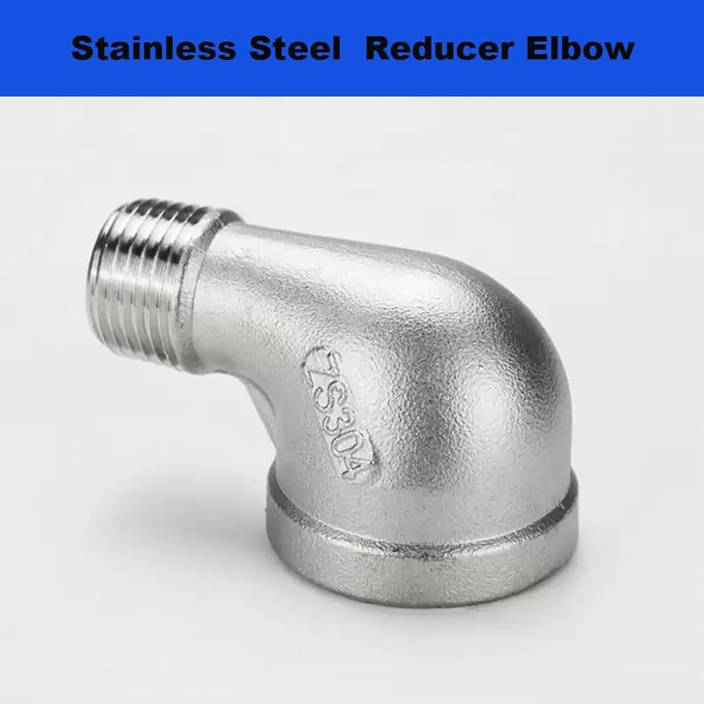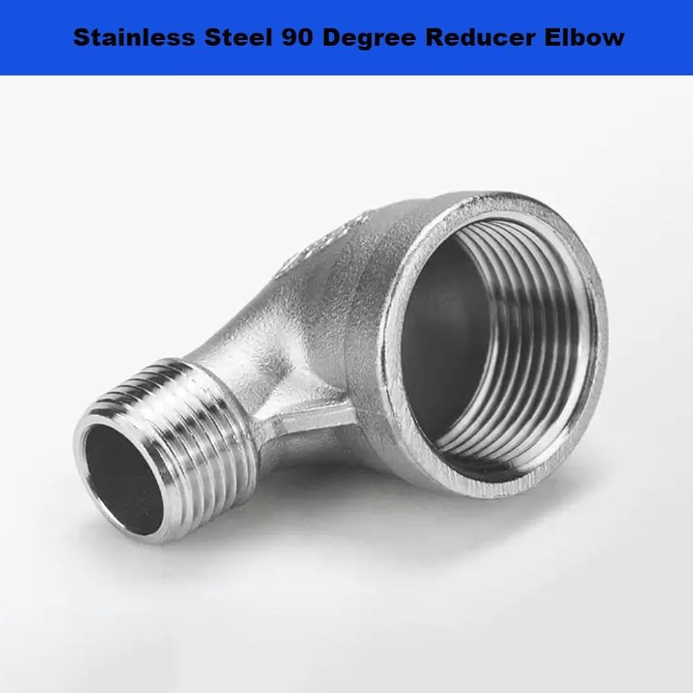 كوع مخفض من الفولاذ المقاوم للصدأ، 1/4 بوصة 3/8 بوصة 1/2 بوصة 3/4 بوصة 1 بوصة 1-1/4 بوصة أنثى إلى ذكر 90 درجة SS304 تجهيزات أنابيب توصيل الكوع، قطعة واحدة (1/2 بوصة إلى 3/8 بوصة)