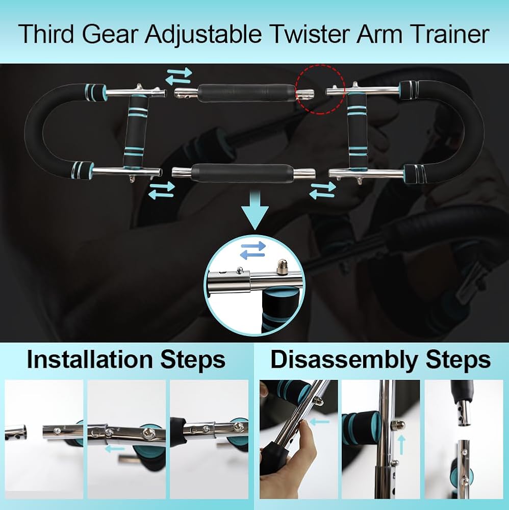 التمرين في أي مكان: جهاز تمرين الذراع الملتوي سواء في المنزل أو الخارج أو المكتب أو أثناء التنقل، لا يشغل مدرب الذراع القابل للفصل مساحة كبيرة ويسهل حمله وتخزينه. يعد مدرب الذراع الملتوي خفيف الوزن والمحمول مثاليًا للتدريبات في المنزل أو المكتب أو السفر. يساعدك على البقاء على المسار الصحيح مع برنامج اللياقة البدنية الخاص بك أينما ذهبت.