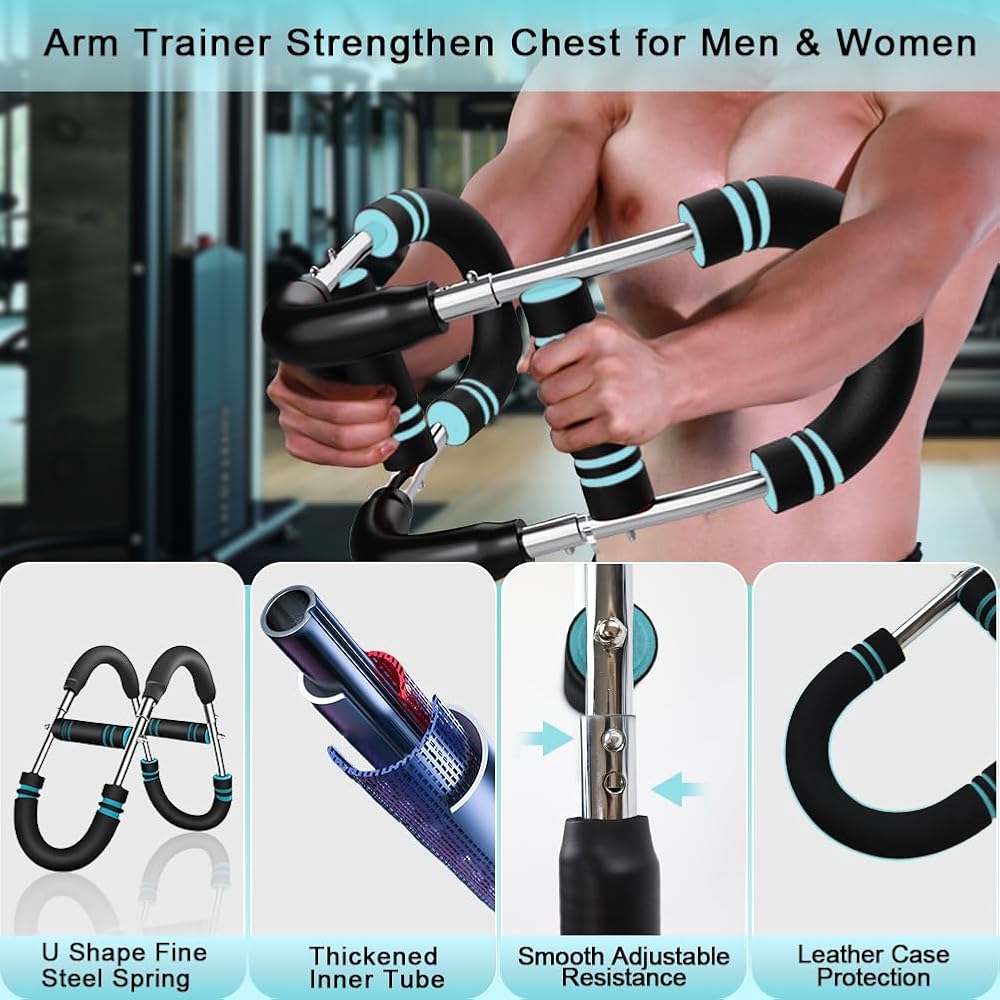 جودة فائقة ومتينة: جهاز تمرين الصدر مصنوع من نوابض معدنية عالية القوة لمرونة ومتانة ونعومة ممتازة. يوفر الغطاء الجلدي الخارجي ثباتًا قويًا ومقاومة موثوقة لمنع الإصابات الرياضية، بينما تضمن المقابض الإسفنجية المبطنة غير القابلة للانزلاق قبضة آمنة ومريحة أثناء التمرين، مما يمنع تعب اليد وعدم الراحة أثناء التمرين.