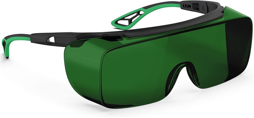 • 【Ergonomic Design, More Safe And Comfortable】The frame and temples can be easy adjusted according to different foreheads and nose bridges to get the most comfortable state. The wrap-around and one-piece design safety goggles can fit the face well, perfectly protecting your eyes from laser damage in all directions.