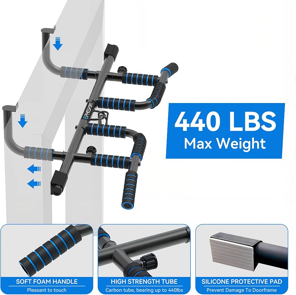 • 【متعدد الاستخدامات وصديق للعائلة】: يدعم أكثر من عمليات السحب - قم بعمليات الدفع والجلوس والانخفاضات وتمارين شريط المقاومة والمزيد. رائعة للمراهقين والبالغين والأطفال تحت الإشراف. شريط واحد، وخيارات تجريب لا تعد ولا تحصى.