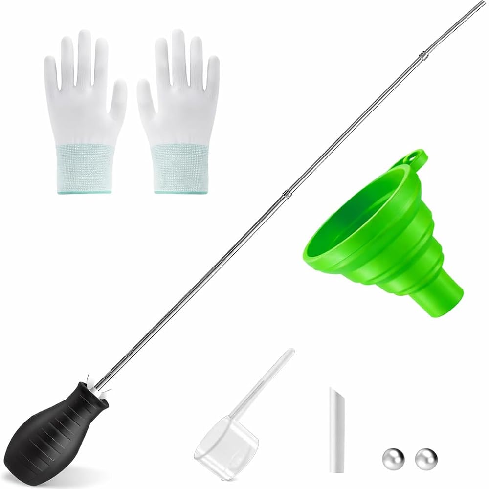 مجموعة منفضة المساحيق الكل في واحد: تتضمن منفضة لمبة واحدة مع أنبوب معدني طويل، وأنبوب فوهة قصير، وكرتين من الفولاذ المقاوم للصدأ، وقمع قابل للطي، ومغرفة قياس واحدة، وزوج واحد من القفازات القابلة لإعادة الاستخدام، لتلبية معظم احتياجات وضع المسحوق اليومية في مجموعة واحدة.