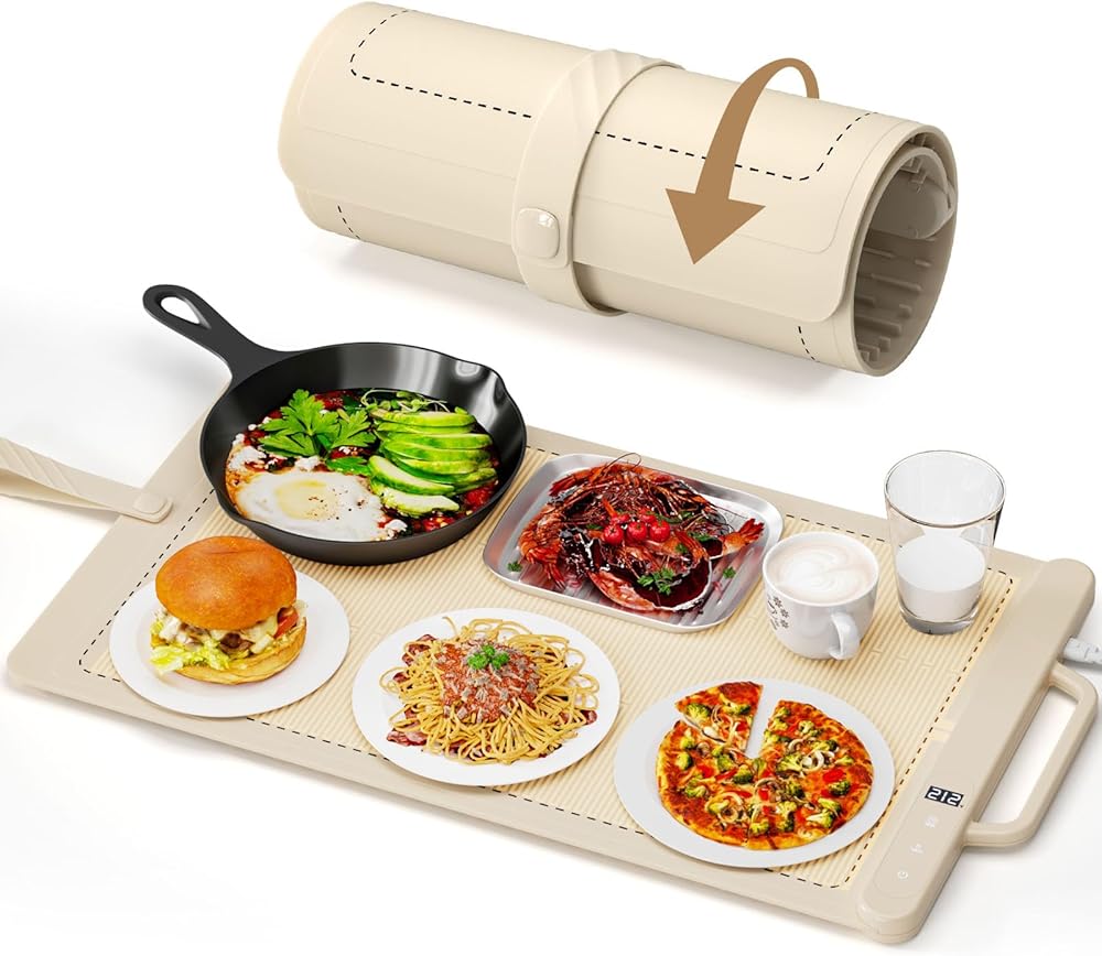 بساط تدفئة للطعام، بساط لتسخين الطعام على سطح المنضدة، صينية تدفئة كهربائية مع 6 مستويات لدرجة الحرارة ومؤقت 6 ساعات، أطباق ساخنة قابلة للطي للبوفيه، سخان طعام محمول للحفلات والسفر باللون الأزرق in Kuwait