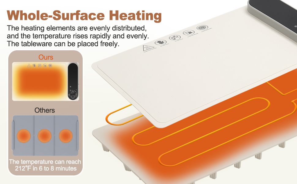 تحكم دقيق بـ 7 مستويات وإحماء سريع: اختر الدفء المثالي (100 درجة فهرنهايت - 212 درجة فهرنهايت) لأي طبق. يصل إلى أقصى درجة حرارة خلال 6-8 دقائق - لا مزيد من وجبات الغداء الباردة أو العشاء الفاتر!