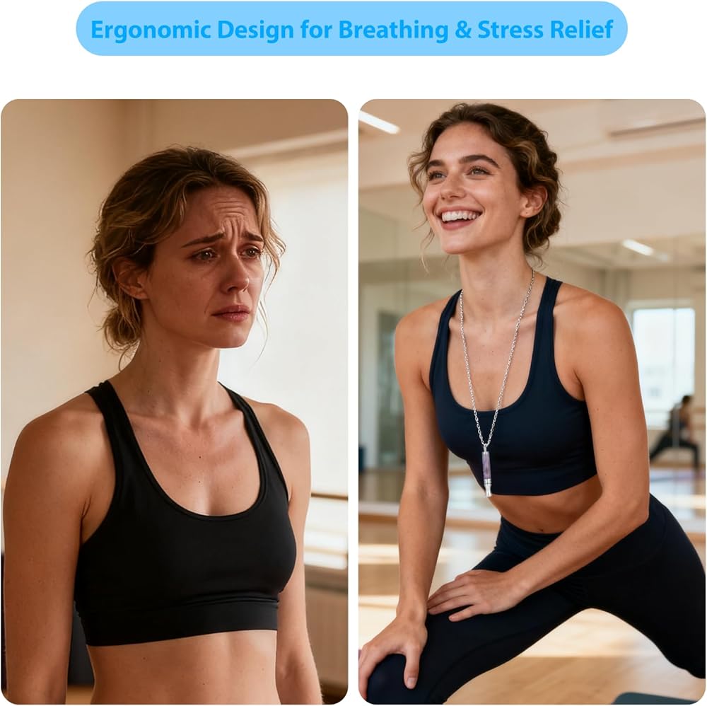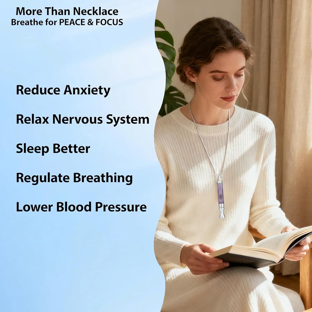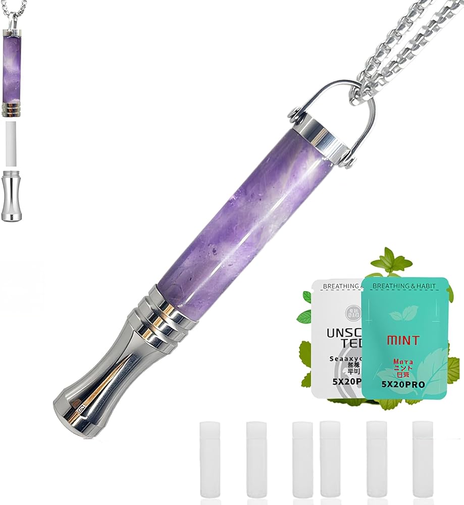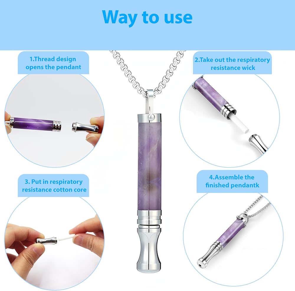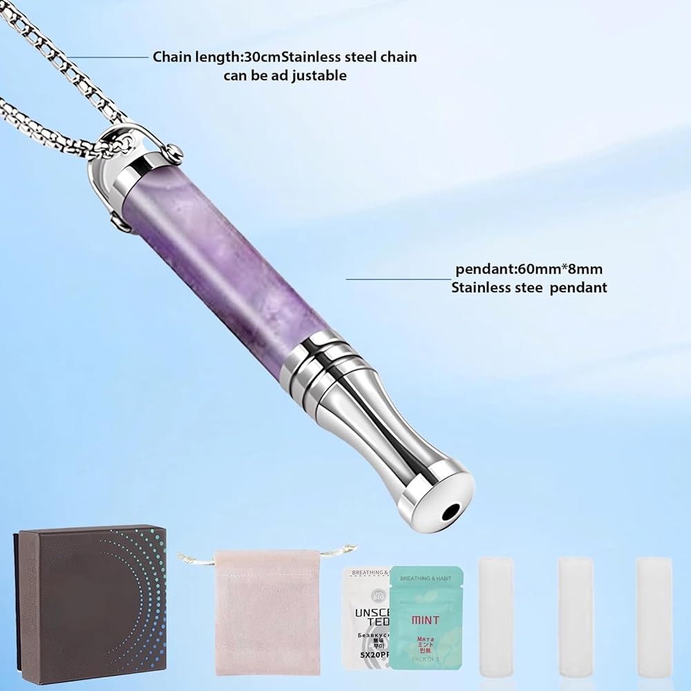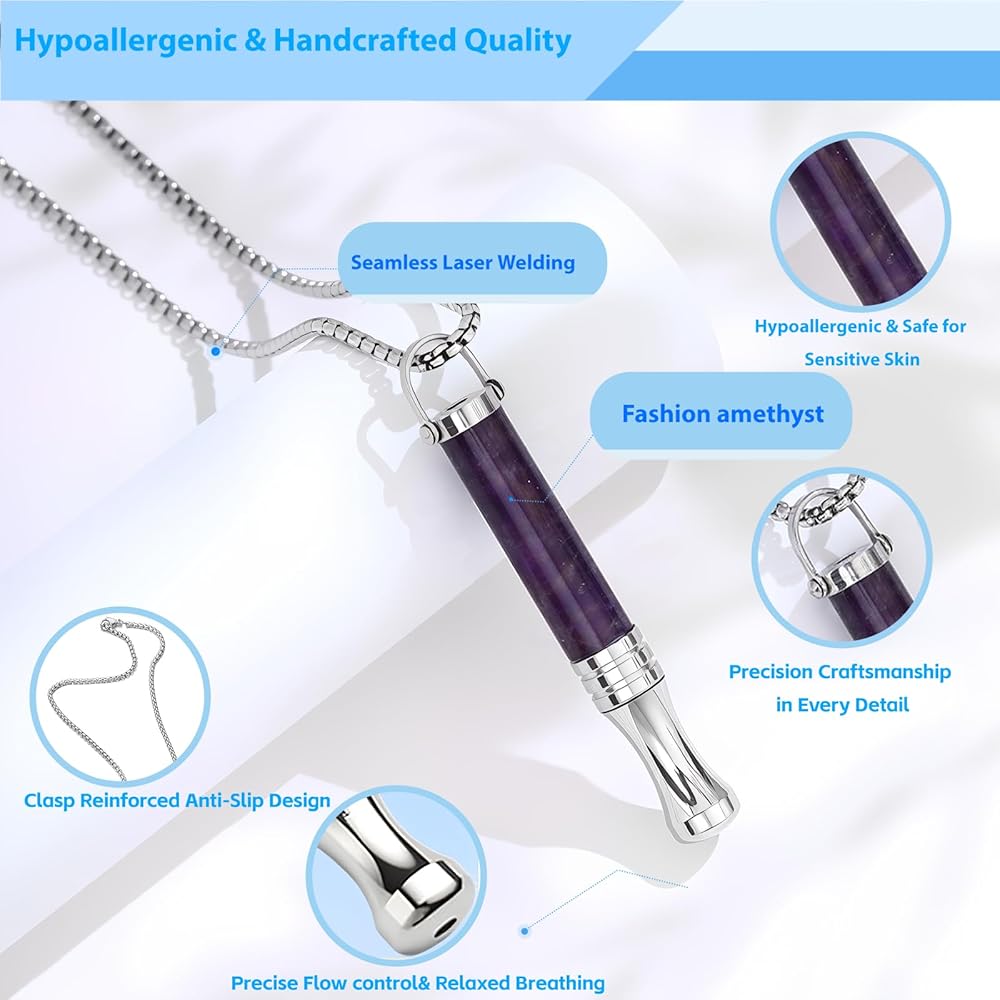 【NATURAL AMETHYST STONE & DISCREET USE】This sleek pendant doubles as a refined accessory and a functional breathing aid. This quit smoking necklace combines the stabilizing energy of natural amethyst stone, believed to enhance willpower and reduce anxiety, no one will notice it's a stop smoking aid, letting you maintain your style while prioritizing health
