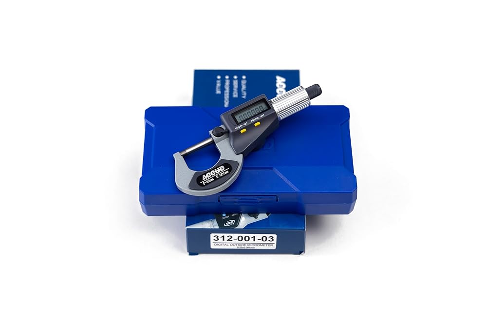 The ACCUD Digital Micrometer is a professional-grade measuring tool designed for precision and accuracy. With a resolution of 0.001 mm (0.00005 inches), it allows you to take highly accurate measurements for a wide range of applications. The micrometer features carbide measuring faces for durability and a ratchet stop for consistent measurements. It can measure up to 1000 mm (39.37 inches) and offers both inch and metric units, making it versatile for various industries. The easy-to-use buttons allow you to switch between ON/OFF/SET, ABS/INC/UNIT modes, ensuring convenient operation. Additionally, it comes with a protective case to keep your micrometer safe during transportation or storage. Whether you're a machinist, engineer, or hobbyist, this digital micrometer from ACCUD is an essential tool for precise measurements.