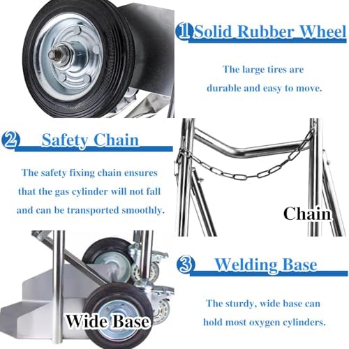 Enhance maneuverability with our large wheels on the lightweight single cylinder cart, your go-to for convenient cylinder transport. Designed for ease and efficiency, this cart is an essential tool for moving gas cylinders safely and securely.