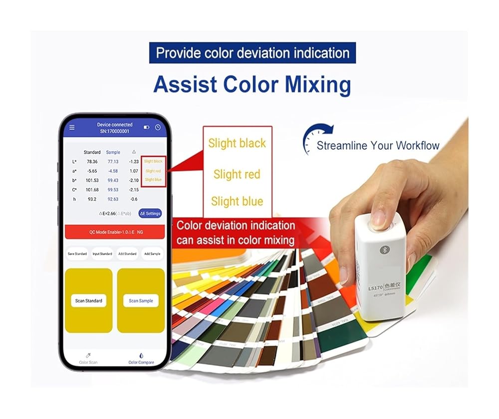It features a standard color adding function, allowing you to extract colors from the color card library for convenient color difference comparison with the sample color.