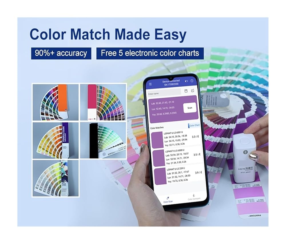 The colorimeter can quickly match the three closest color card numbers from multiple standard color card libraries, with an accuracy rate of up to 90%.