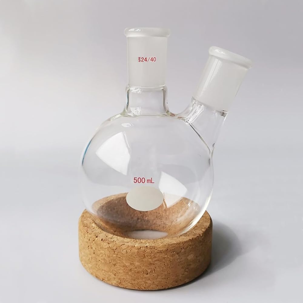 الاستخدام: قارورة مستديرة القاع ذات رقبتين هي نوع من الأواني الزجاجية المختبرية شائعة الاستخدام في الكيمياء والكيمياء الحيوية والأبحاث الصيدلانية، وكذلك في البيئات التعليمية للتجارب والعروض التوضيحية