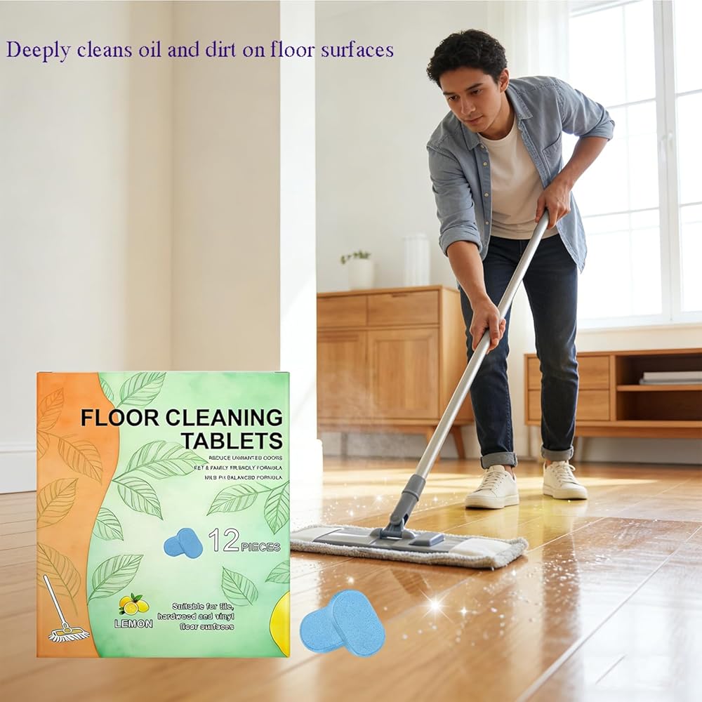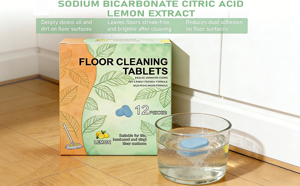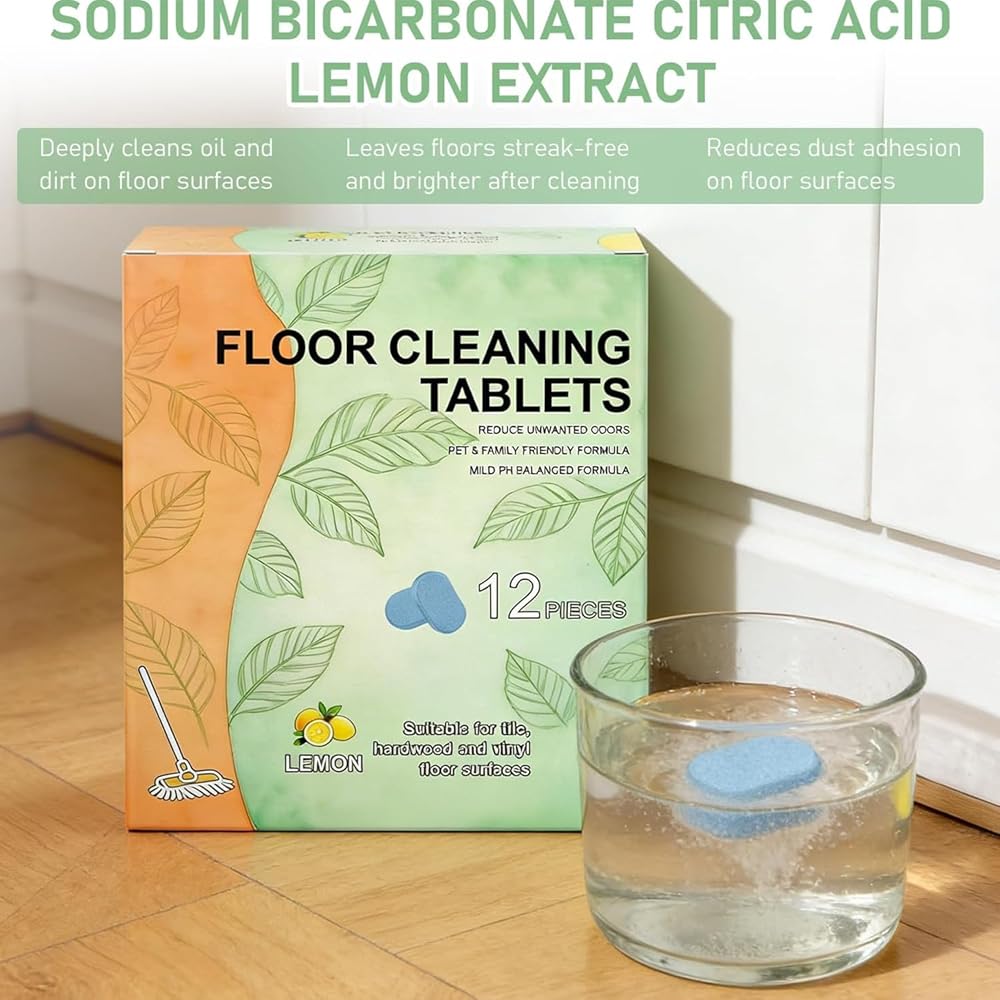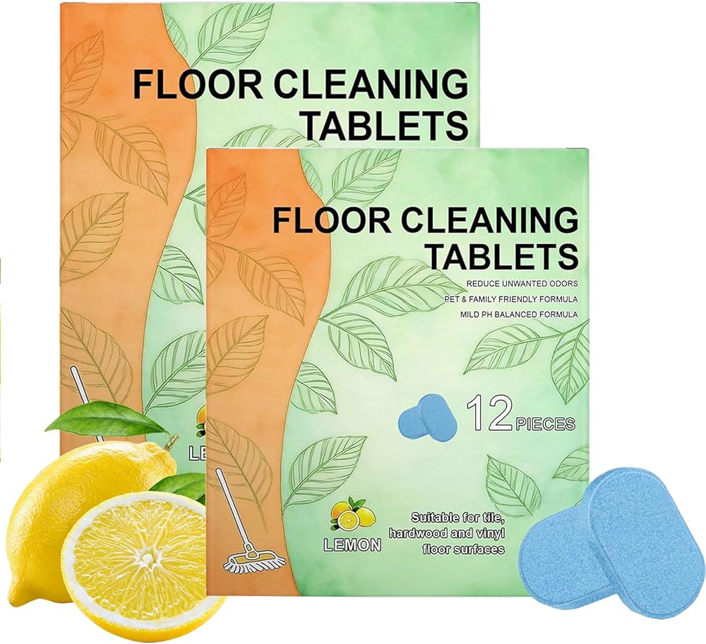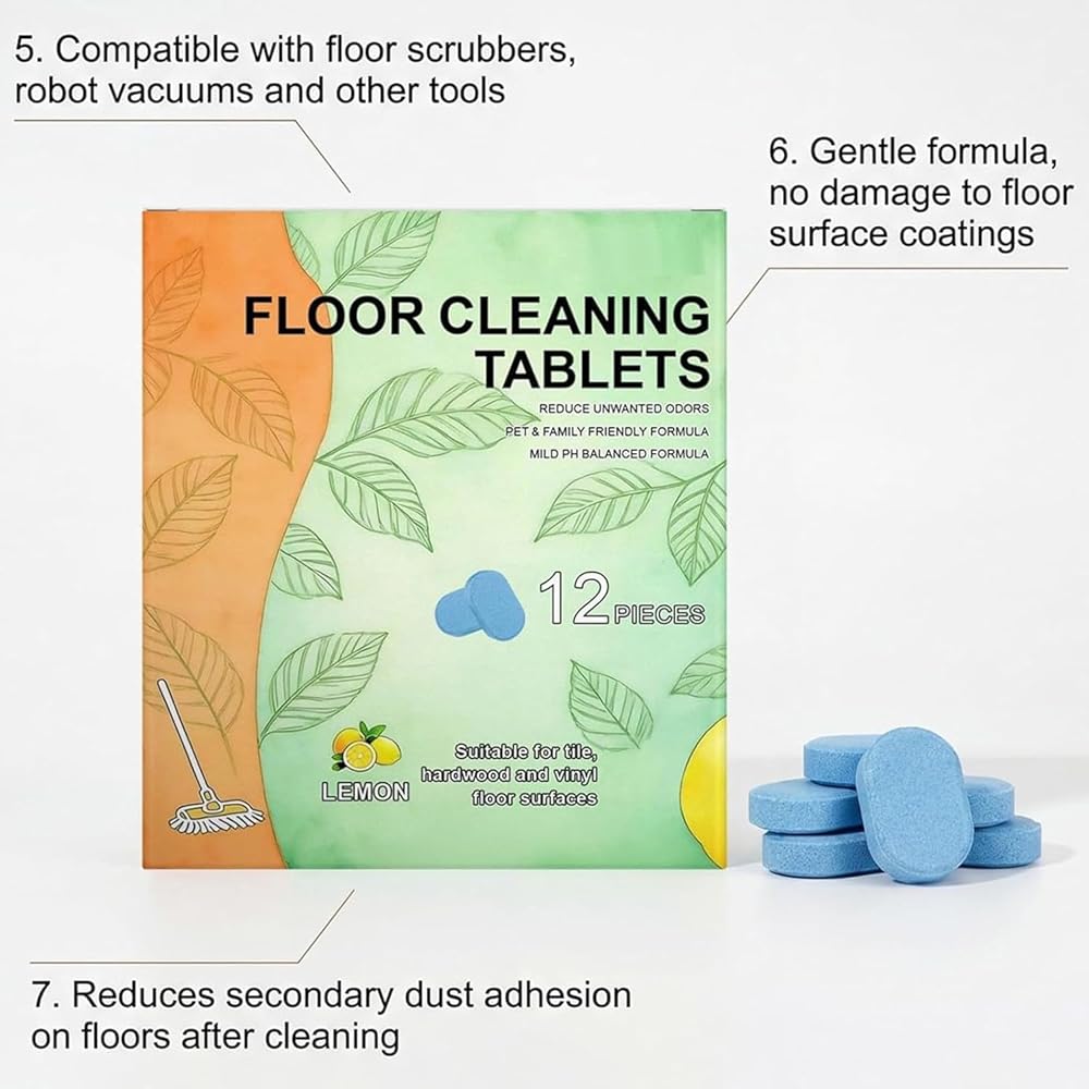 12 قطعة من أقراص تنظيف الأرضيات، محلول تنظيف قابل للذوبان تم قياسه مسبقًا للبلاط والفينيل والخشب الصلب ورائحة الليمون المنعشة، متوافق مع ممسحات الروبوت والمكانس الرطبة/الجافة (24 قطعة)