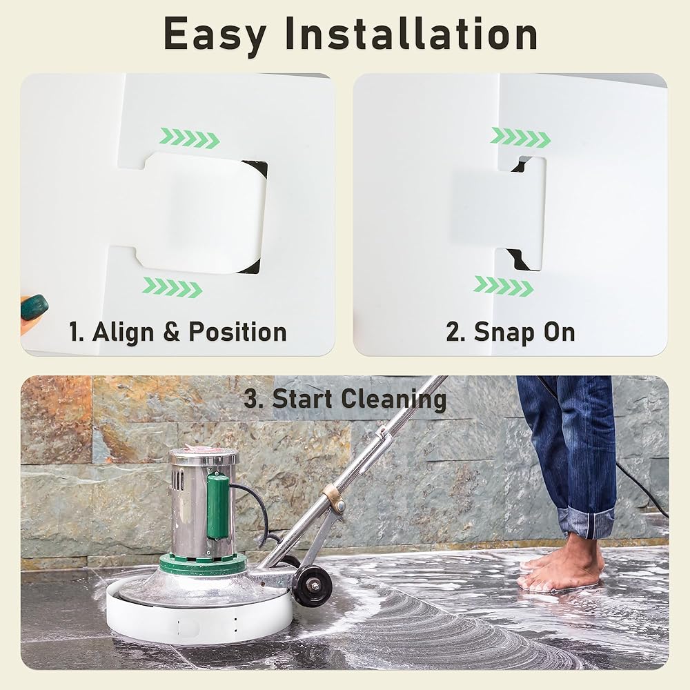 • يعد تركيب واقيات الرش هذه عملية سريعة وخالية من الأدوات وتستغرق ثوانٍ فقط. يمكنك بسهولة إرفاق هذا الملحق والبدء على الفور في مهام التنظيف أو تجريد الأرضيات دون أي تأخير محبط أو متاعب في الإعداد.