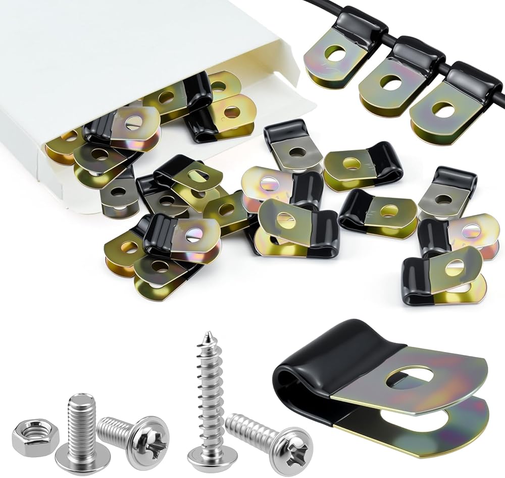 30 قطعة من مشابك خط الفرامل مقاس 3/16 بوصة مع براغي، مشابك كابلات معدنية مطلية بالزنك من الفولاذ الكربوني لملحقات السيارات وخطوط الفرامل ومشبك الأسلاك العامة