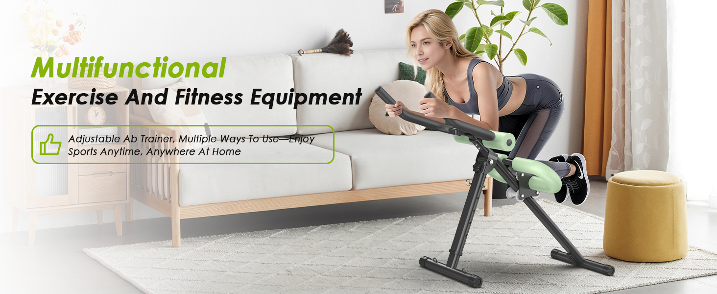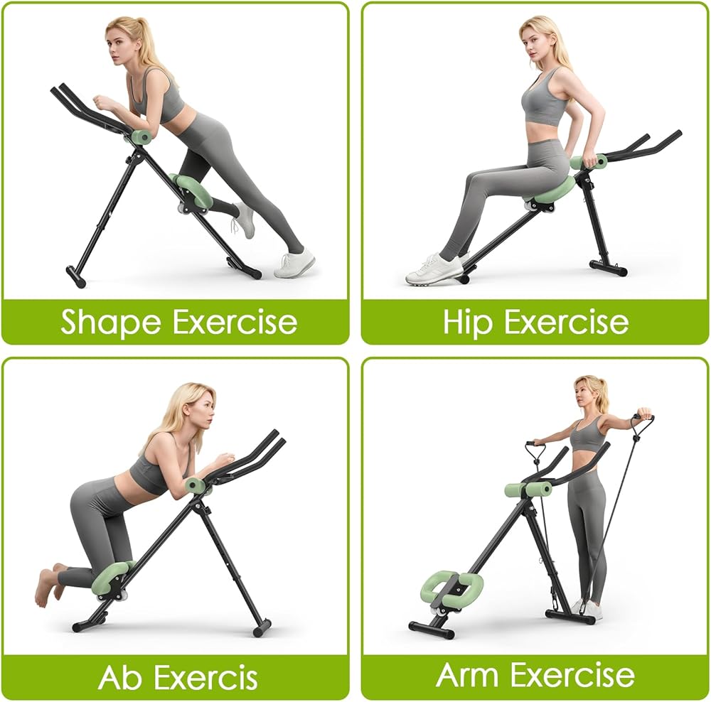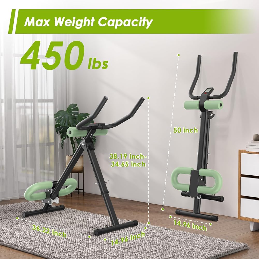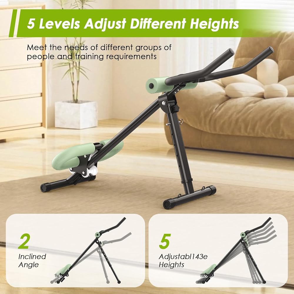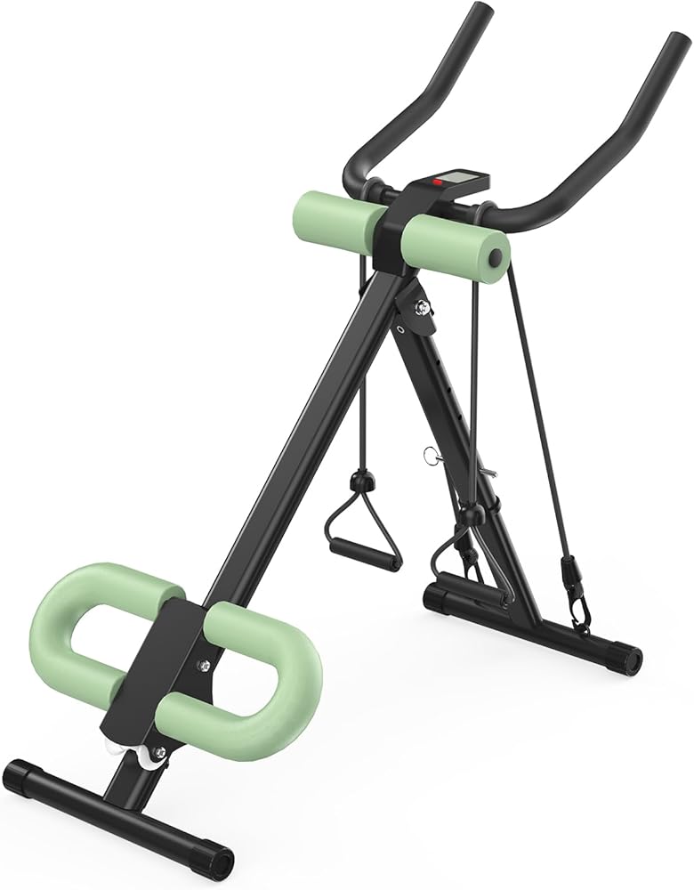 جهاز 4 في 1 لتمرين المعدة، جهاز تدريب عضلات البطن قابل للتعديل مع شاشة LCD، جهاز تمرين عضلات البطن قابل للطي مع حماية للركبة والظهر، سعة تحميل 400 رطل، للجنسين، أخضر