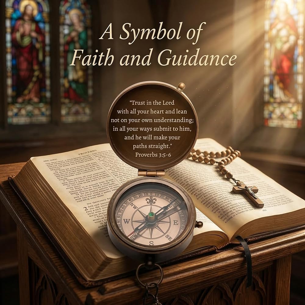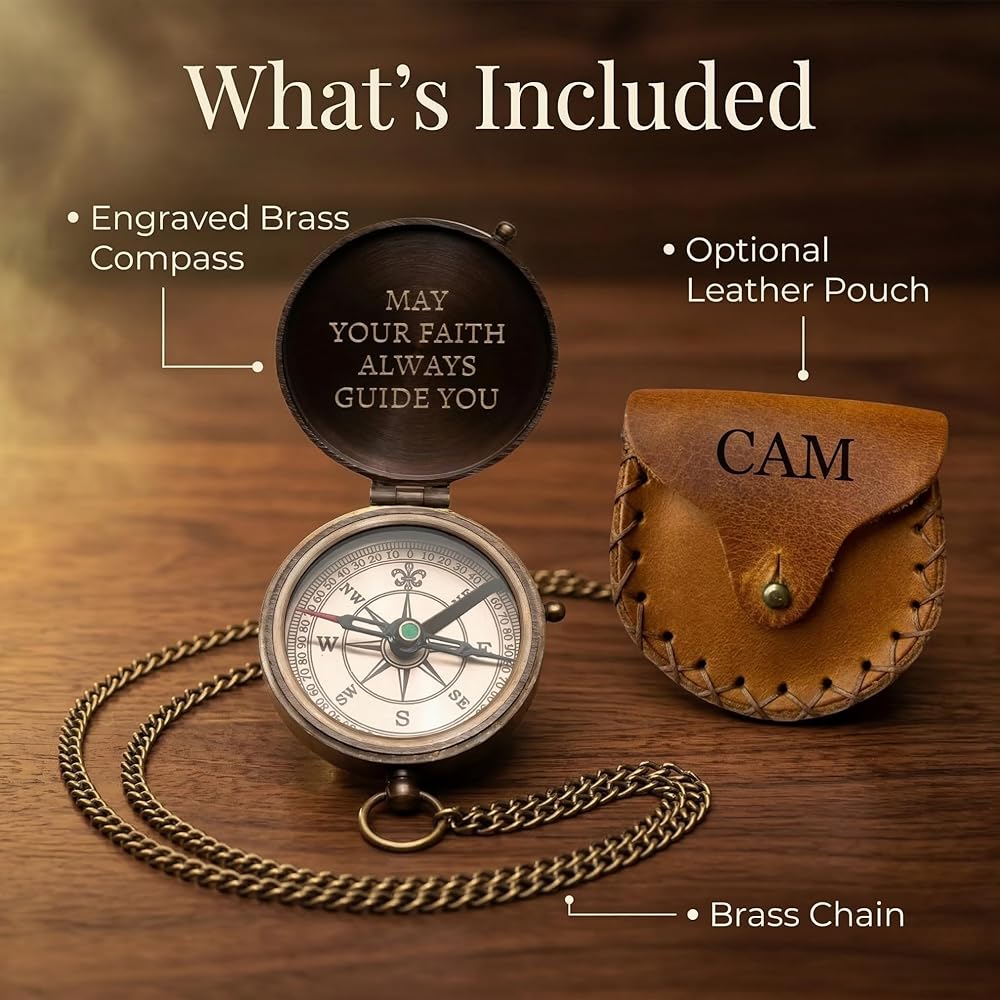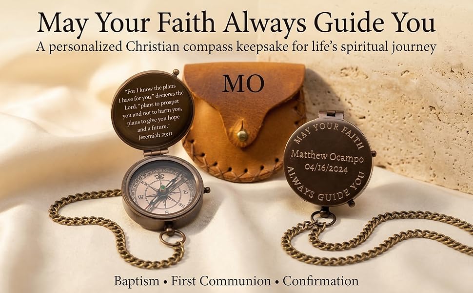 هدايا تأكيد شخصية للأولاد - بوصلة مسيحية منقوشة مخصصة للابن أو الحفيد أو الابن - هدية تذكارية دينية للمناولة الأولى