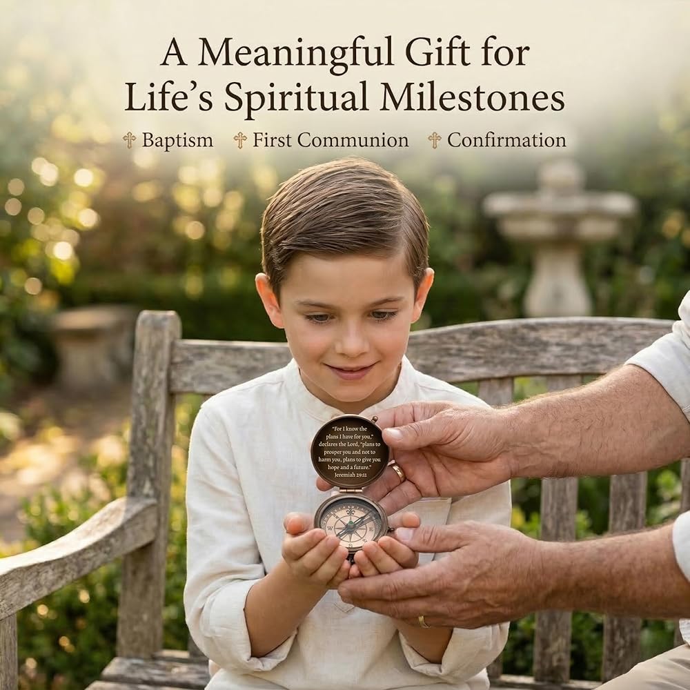 • 【هدية معلم الإيمان للتأكيد أو المناولة الأولى】تمثل الاتجاه والنضج والالتزام الروحي. تذكار ديني مدروس للتأكيد أو المناولة الأولى، وهدية بوصلة المناولة الأولى ذات مغزى غالبًا ما يتم اختيارها من بين هدايا المناولة للأولاد