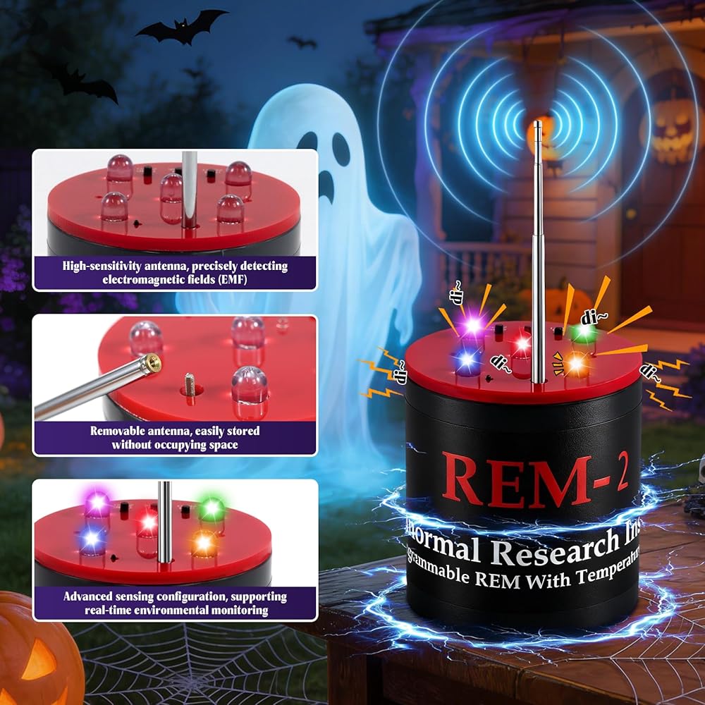 【أداة صيد الأشباح يجب اقتناؤها】مصممة خصيصًا لصيد الأشباح الاحترافي، يمكن لهذا الكاشف استشعار التغيرات في المجالات الكهرومغناطيسية، مصحوبة بتنبيه مسموع وأضواء LED وامضة. عنصر أساسي لأي مجموعة معدات صيد الأشباح، فهو يتميز بهوائي قابل للسحب ووظيفة REM للكشف الدقيق عن الطاقة الخارقة