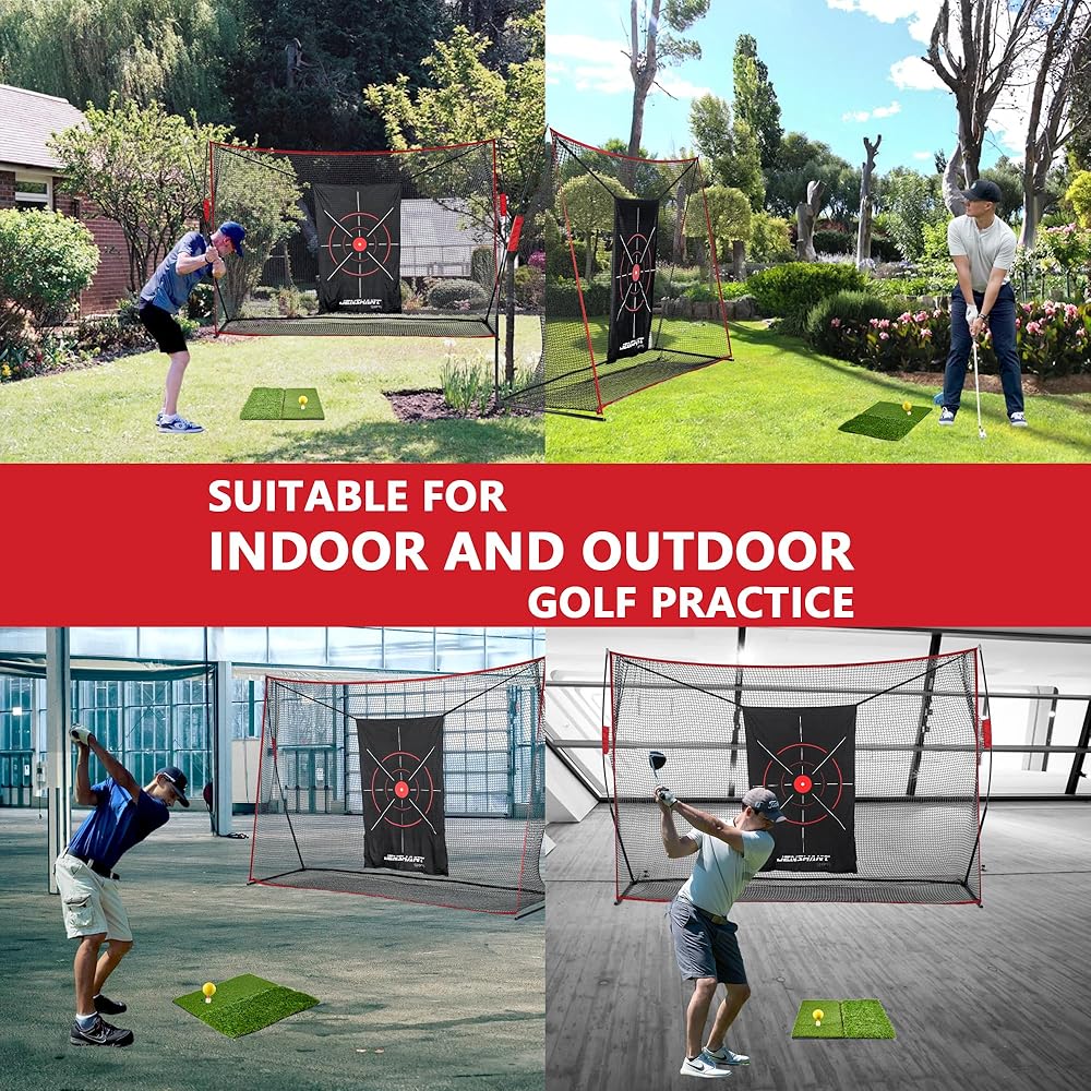 Ideal for use at home, in the yard, at the driving range, or even indoors (with sufficient space), this golf net set is perfect for golfers of all levels.